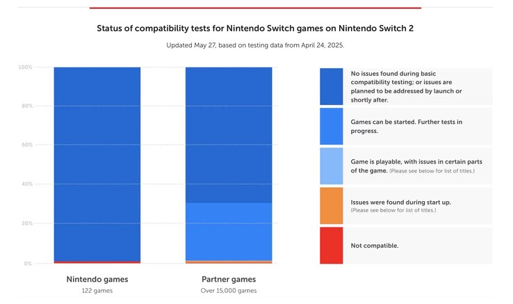 Das liegt je nach Spiel entweder an der fehlenden Infrarot-Kamera der Joy-Con 2, oder aber daran, dass die etwas größeren Controller schlicht nicht in Zubehör-Produkte wie den Ring-Con-Adapter passen. Insgesamt 118 Spiele sollen auf der Switch 2 gar nicht erst starten, darunter durchaus beliebte Spiele wie Darksiders Genesis, Dead by Daylight, Final Fantasy, Little Nightmares Complete Edition, NieR: Automata, South Park: The Fractured But Whole und Wolfenstein II: The New Colossus. Laut Nintendo werden diese Probleme aktuell noch untersucht.