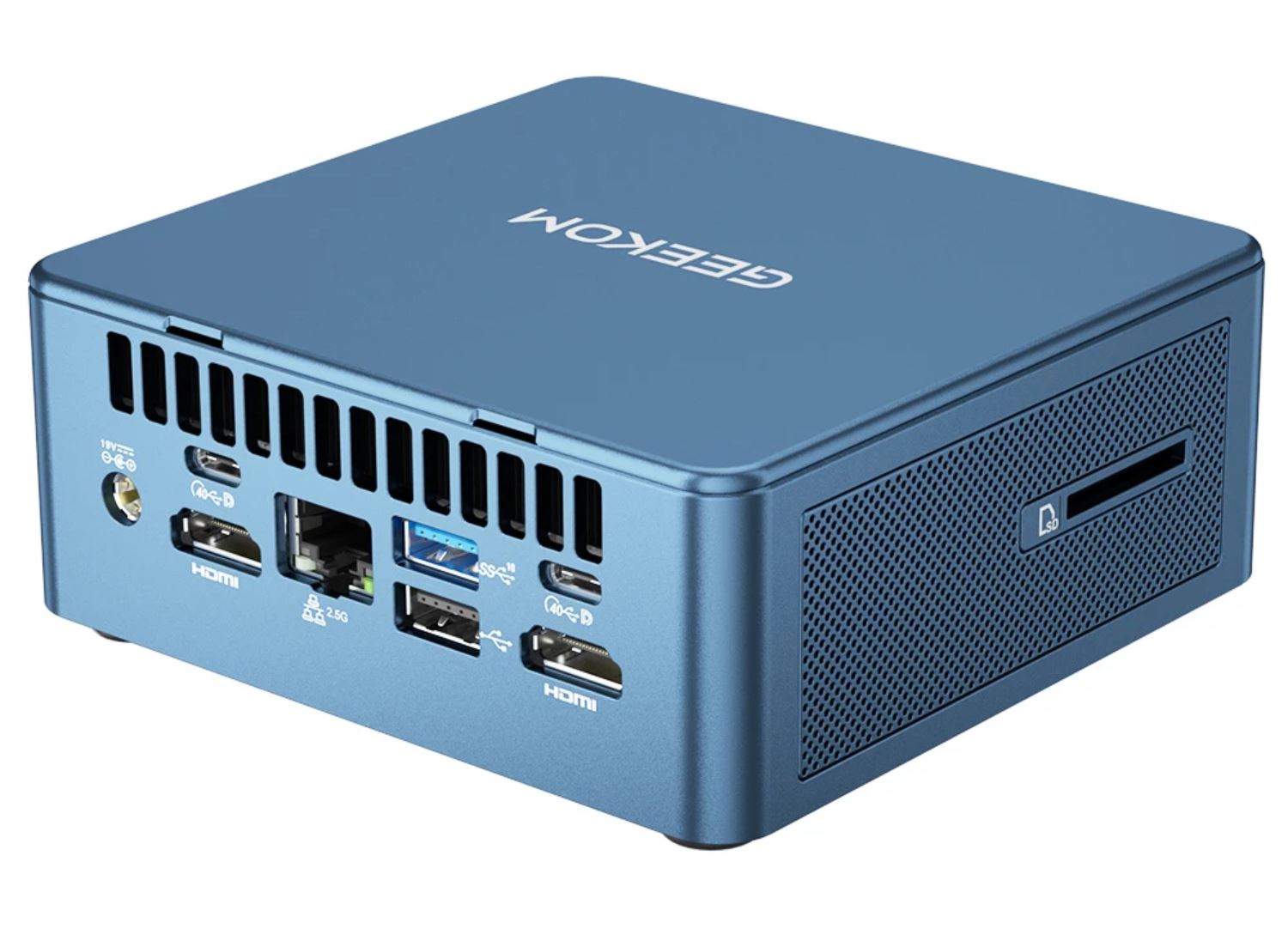 Die Intel Iris Xe GPU kann bis zu 8K-Auflösung ausgeben oder bis zu vier Bildschirme mit maximal 4K bei 60 Hz versorgen. Angeschlossen werden die Bildschirme über je zweimal HDMI 2.0 (bis 4K@60Hz) und USB4 (bis 8K@30Hz). Als weitere Anschlüssen stehen unter anderem dreimal USB 3.2 Gen 2 Type-A, 2,5 Gigabit schnelles LAN, ein SD-Kartenleser sowie 3,5-mm-Audio zur Verfügung. Zudem funkt der Geekom IT13 mit Wi-Fi 6E und Bluetooth 5.2. Als Betriebssystem ist Windows 11 installiert.