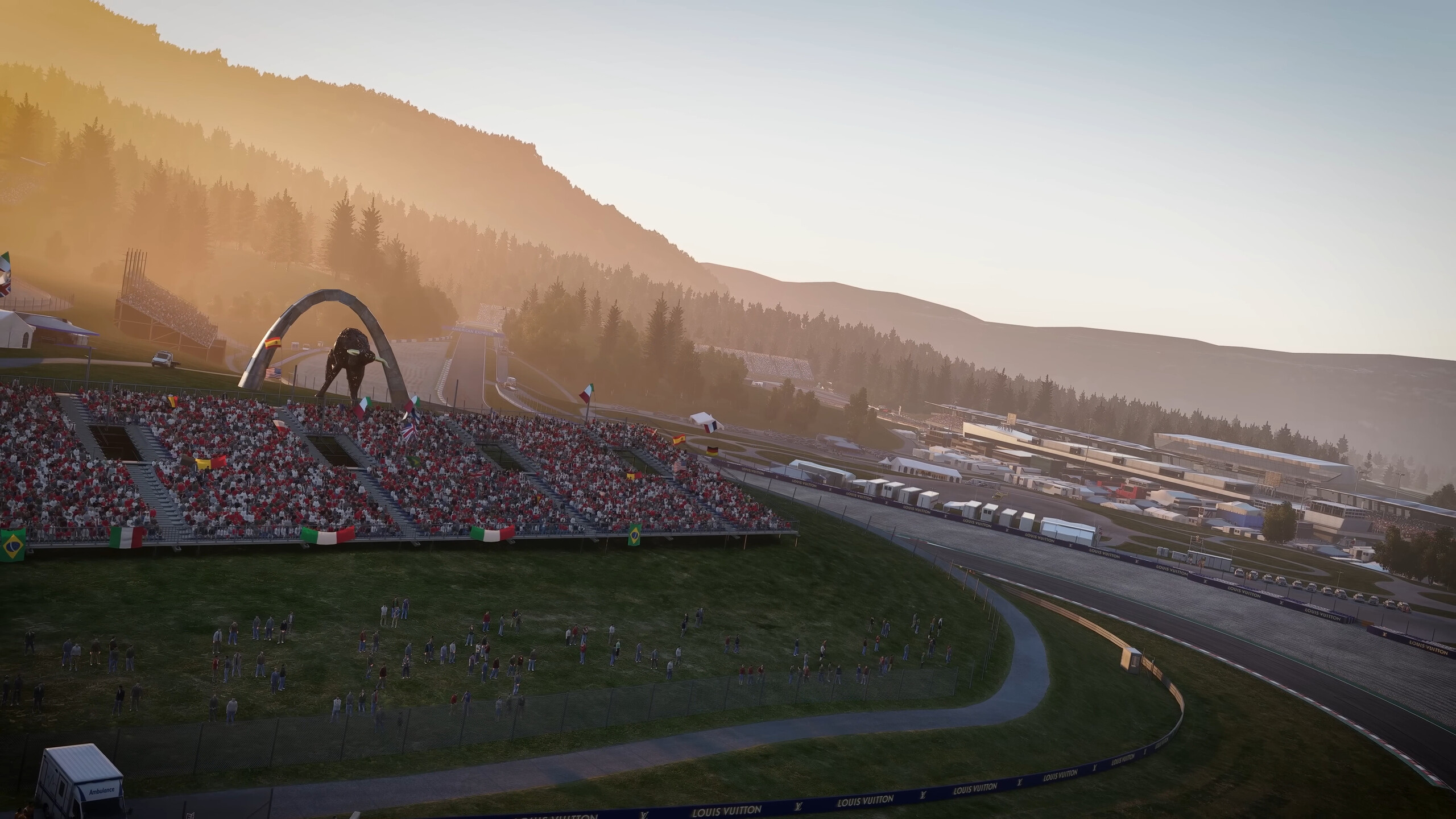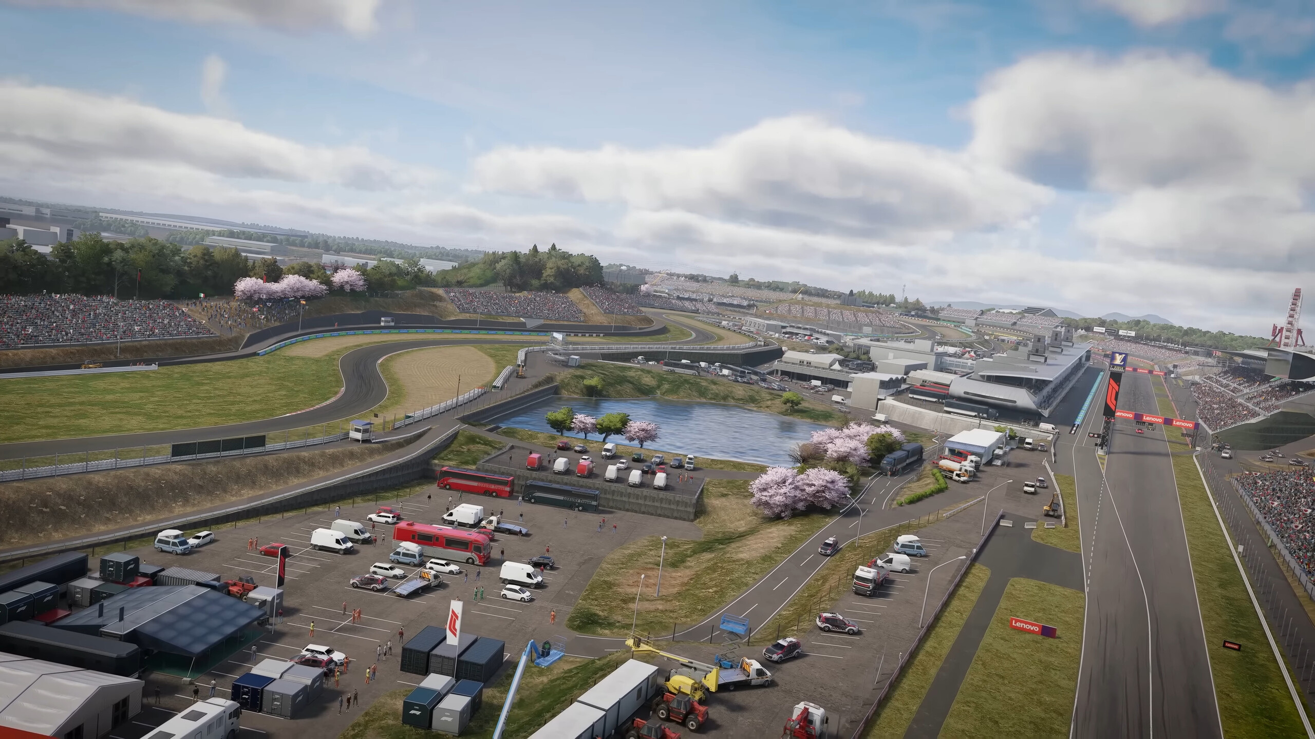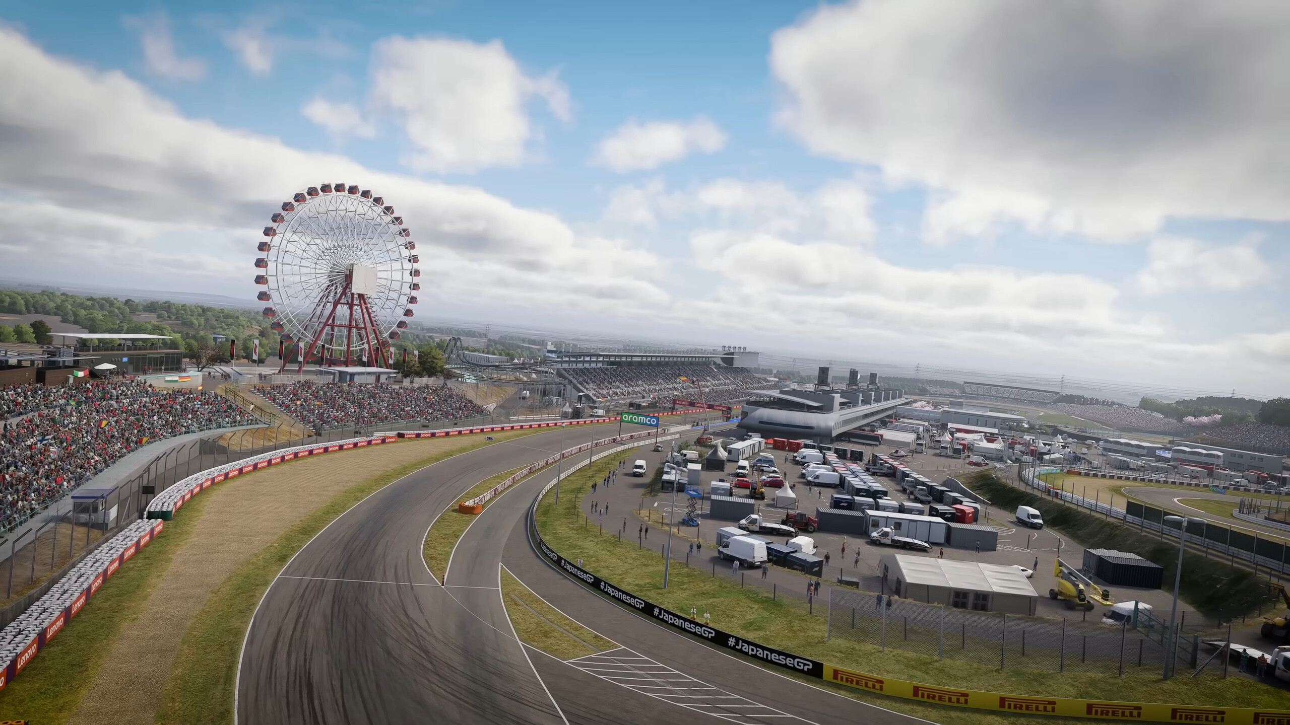 Grafisch hat sich das Spiel eher behutsam weiterentwickelt. Die Strecken sind gut nachgebildet und warten mit Zuschauern und Details wie Tourbussen, Mechanikerfahrzeugen und natürlich jede Menge Werbebanner auf. Übermäßig detailliert wirken die Umgebungen bei genauerem Hinsehen jedoch auch bei maximalen Grafikeinstellungen nicht. Das ist meistens auch nicht weiter schlimm, immerhin jagen wir hier in einem irren Tempo unserem Vordermann nach. Dennoch muss gesagt werden, dass es angesichts der Anforderungen schönere Spiele gibt. Beispielsweise ist die Wasserdarstellung in Bild 2 (siehe unten) eher mau und Grastexturen wirken etwas platt.