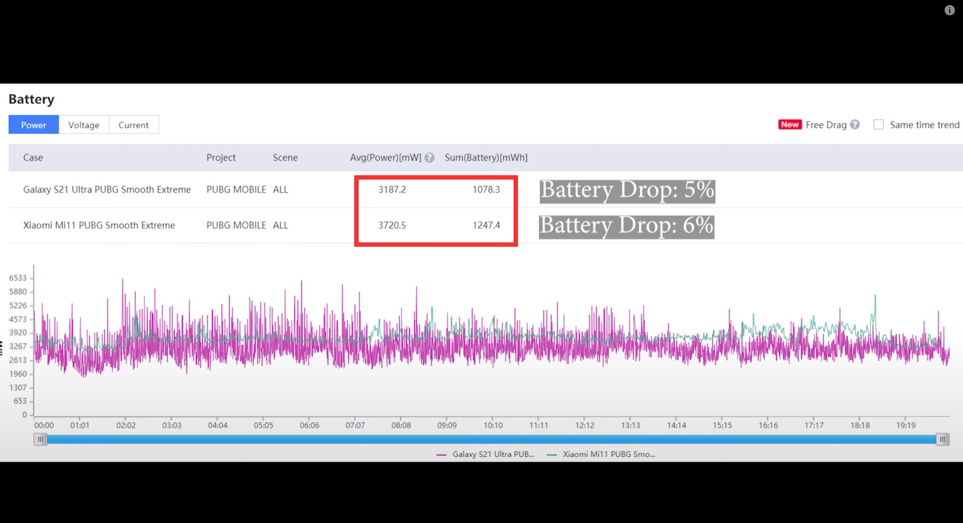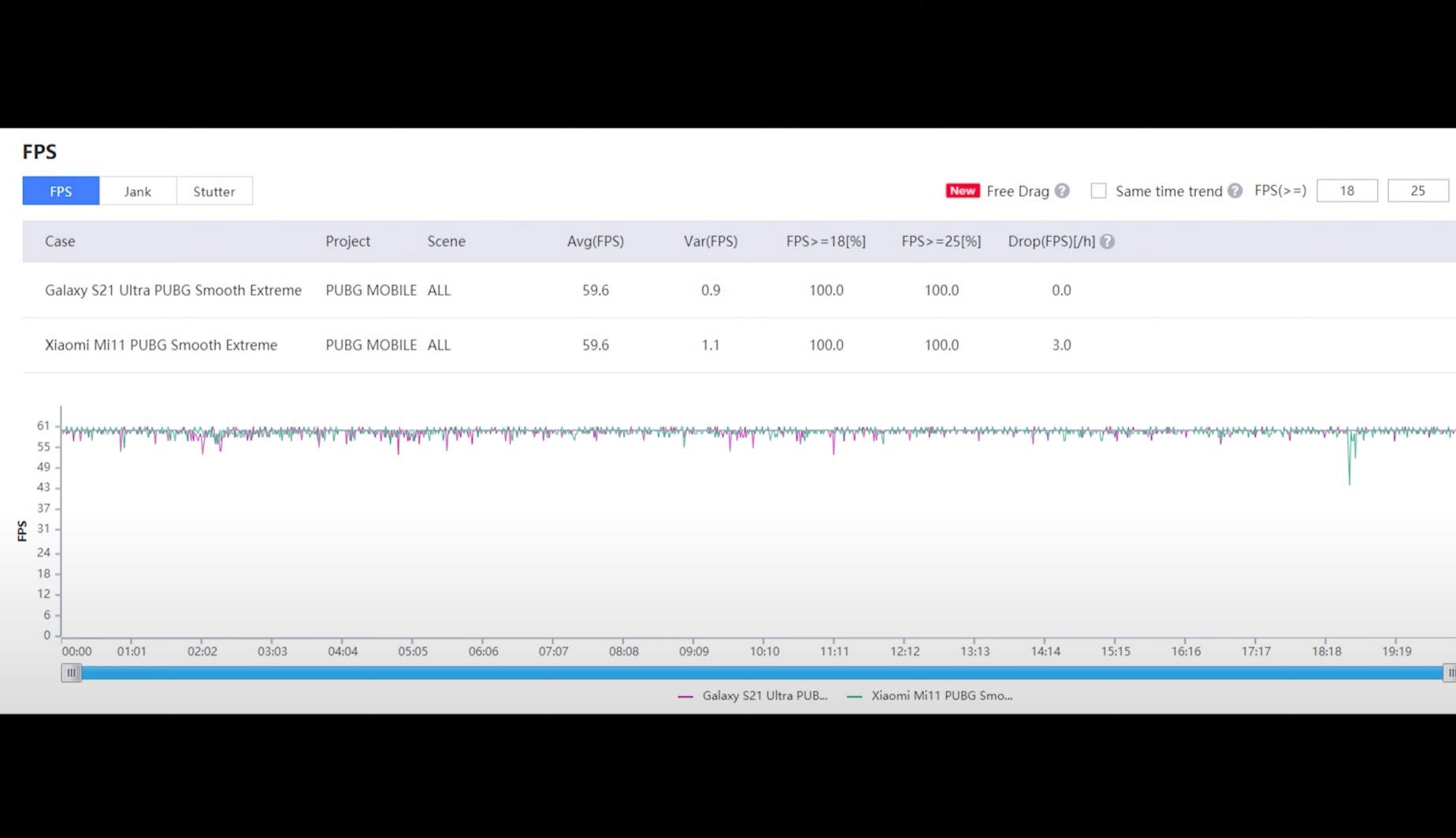 Das jüngste Video des Testers ist ein Gaming-Test von PUBG Mobile - 20 Minuten Gameplay im Vergleich zwischen dem Snapdragon 888 im Xiaomi Mi 11 und dem Exynos 2100 in Form des Galaxy S21 Ultra, beide natürlich mit den gleichen Einstellungen, auch wenn der ultimative Vergleich wohl eher zwischen einem US-Amerikanischen Galaxy S21 mit Snapdragon-Chip und der internationalen Exynos-Variante ausgetragen werden sollte. Nichtsdestotrotz zeigt sich im Rahmen des Gaming-Tests, dass Samsung die dunkle Exynos 990-Zeit offenbar doch hinter sich gelassen hat, zumindest bei PUBG Mobile.