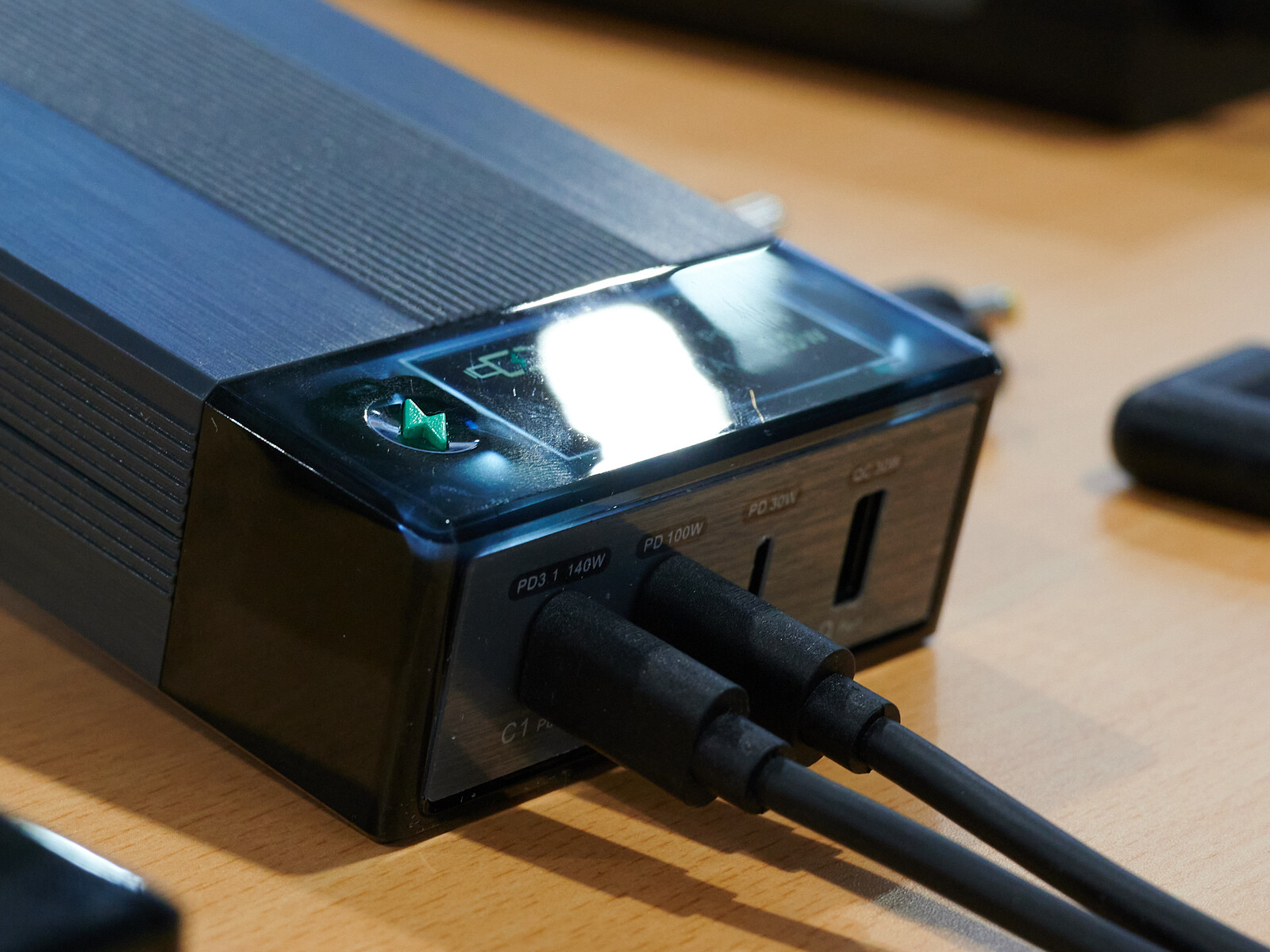 Bei den 240 Watt handelt es sich auch gleichzeitig um das gesamte Power-Budget des GaN-Netzteils. Mehr ist nicht möglich. Die einzelnen USB-C-Ports haben ein Maximum von 140, 100 und 30 Watt im Power-Delivery-Modus. Der USB-Typ-A-Port bietet 30 Watt per Quickcharge.