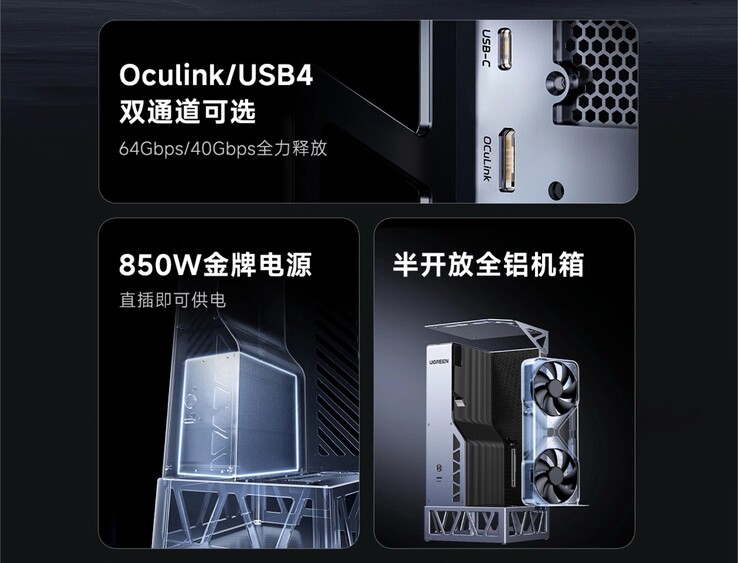 Gerade für ultradünne Laptops oder Gaming-Handhelds, die gänzlich auf eine dedizierte Grafikkarte verzichten, kann eine derartige eGPU aber zu einer deutlich besseren Gaming-Performance führen. Ungewöhnlich ist die Ugreen LinkStation nicht zuletzt aufgrund ihres Designs – das rund 5 Kilogramm schwere Gehäuse besteht größtenteils aus Aluminium, das Netzteil befindet sich im Inneren des Gehäuses, die Grafikkarte bleibt durch das teilweise offene Design stets sichtbar. Allerdings verzichtet Ugreen somit auch auf einen Staubfilter für die GPU.