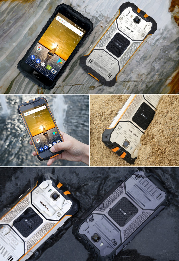 Natürlich ist das Armor 2 nach IP68-Norm wasser- und staubdicht, es sollte aufgrund seines Äußeren aber auch den einen oder anderen Sturz überleben, <strike>wenngleich Ulefone bislang noch keine Angaben zum Displayschutz liefert</strike>. (Das Display ist durch Gorilla Glas 3 geschützt) Im Inneren werkelt wie im Ulefone T1 ein MediaTek Helio P25-Octa-Core mit 6 GB RAM und 64 GB erweiterbarem Speicher. Auf der Unterseite ist ein Fingerabdrucksensor integriert, oben steckt eine 8 Megapixel-Linse mit F/2.0 Blende. Hinten gibt es eine 16 Megapixel-Kamera, ebenfalls mit F/2.0 Blende.