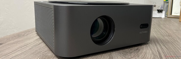 Der Projektor zeichnet sich durch eine auffällige schwarze Scheibe auf der Oberseite aus, die ihm ein gewisses optisches Flair verleiht und an einen Plattenspieler erinnert. Obwohl diese Scheibe rein ästhetischen Zwecken dient, ist sie dennoch einprägsam. Das Objektiv ist mit einer integrierten Schiebeabdeckung versehen, um es bei Nichtgebrauch zu schützen.