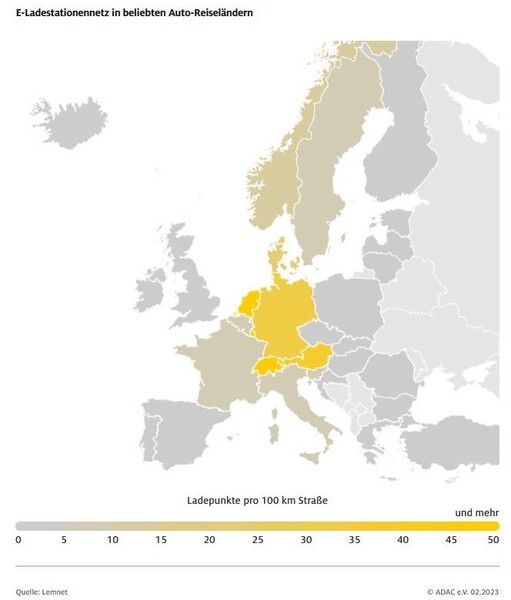 ADAC-Informationen zu Ladestationen in Europa