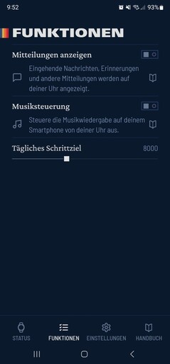 Die relativ simple Smartwatch kann immerhin eingehende Benachrichtigungen anzeigen und die Musikwiedergabe des verbundenen Smartphones steuern. Während im Ankündigungs-Video noch eine Integration ins Spiel angedeutet wurde, durch welche beispielsweise die aktuelle Umgebungstemperatur oder die Beschleunigung des Raumschiffs angezeigt werden konnte, fehlt von dieser Funktionalität nun jede Spur.