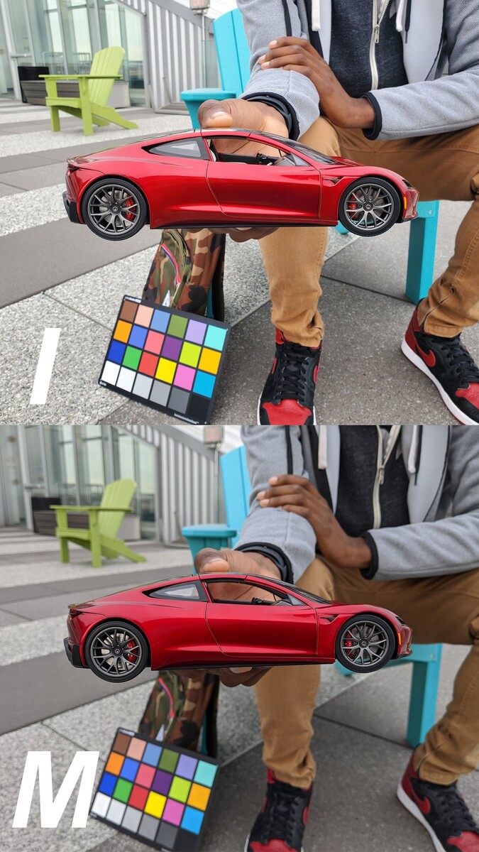 In Runde 3, das Bild mit dem Auto im Vordergrund, wurde die Schärfe plötzlich zum Entscheidungskriterium, allerdings auf eher ungewöhnliche Art und Weise. Eigentlich würde man erwarten, dass der Unschärfebereich um den Vordergrund herum, als Vorteil erkannt wird - immerhin ein Merkmal teurer DSLRs mit großen Sensoren beziehungsweise guter Smartphone-Kameras mit speziellen 3D-TOF-Sensoren und ausgefeilten Bokeh-Algorithmen. Doch die Mehrheit entschied sich in Runde 3 für das "weniger nach einer DSLR-aussehende" Samsung-Foto statt des eigentlich "teurer wirkenden" vom Huawei Mate 30 Pro, weil ersteres auch in den Randbereichen schärfer war, wie Marques erklärt. Sprich: Der Bokeh-Effekt der größeren Sensoren beziehungsweise des Porträt-Modus ist, zumindest wenn es um Objektfotos und nicht um Porträts geht, offenbar überbewertet - das Publikum bevorzugt in der direkten Gegenüberstellung das insgesamt schärfere Foto.