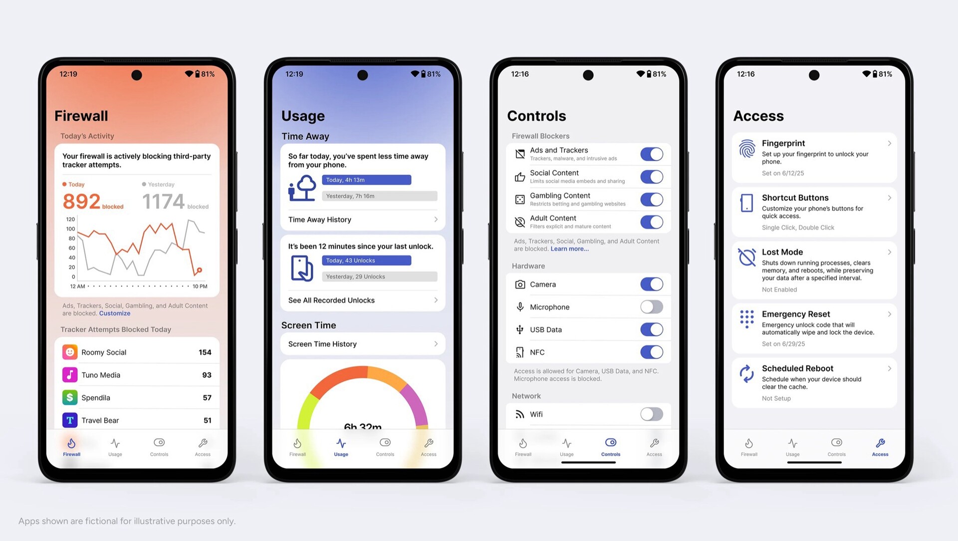 Für eine breitere App-Kompatibilität setzt das Up Phone zwar auf Android, allerdings auf die Open-Source-Version des Betriebssystems ohne Google-Dienste. Durch umfassende Software-Anpassungen sollen Tracker blockiert werden, während systemweit ein VPN aktiviert werden kann. Unplugged bietet auch einen verschlüsselten Cloud-Dienst zum Synchronisieren von Daten sowie eine Open-Source-Firewall. Apps können über einen unregulierten Store bezogen werden, der nicht aufzeichnet, welche Apps von welchen Nutzern geladen wurden.