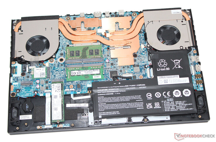 Der verbaute Intel Core i5-12500H liefert eine ordentliche Multi-Core-Leistung, im Akkubetrieb wird diese jedoch praktisch halbiert. Neben 8 GB DDR4-RAM, der auf bis zu 64 GB erweitert werden kann, erhält man eine schnelle PCIe-4.0-SSD mit 512 GB, die allerdings nach kurzer Zeit stark drosselt. Daneben kann eine weitere SSD mit PCIe-3.0-Anbindung installiert werden.