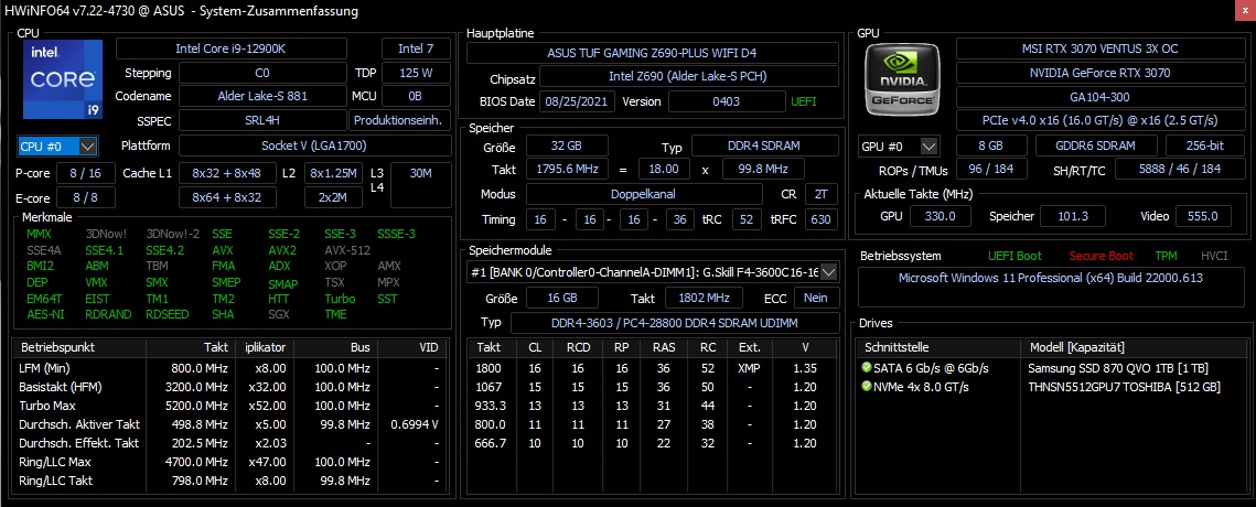 | Prozessor | Intel Core i9-12900K (16C/24T) |