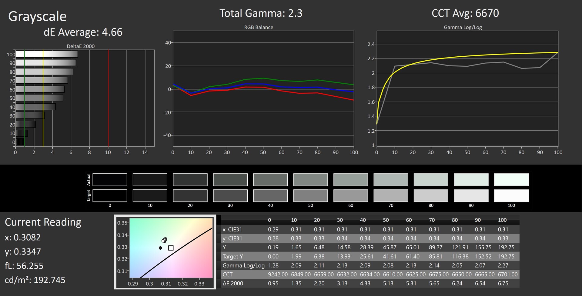 ΔE Greyscale Calman: 6.78 | ∀{0.09-98 Ø5}