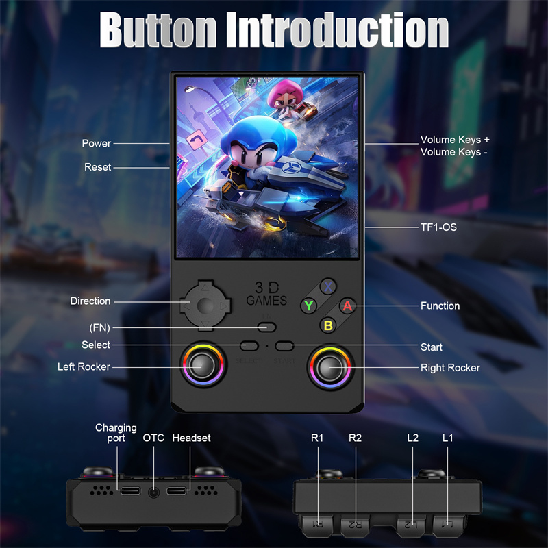 Beim V40 Max handelt es sich um einen Gaming-Handheld, bei welchem der Bildschirm über den Eingabegeräten angeordnet ist, somit entspricht das System diesbezüglich in etwa einem ganz klassischen Game Boy. Verbaut ist ein 4 Zoll großes Display auf Basis der IPS-Technologie und mit einer Auflösung von 720 x 720 Pixeln, damit liegt ein 1:1-Seitenformat vor - das muss für die Darstellung nicht immer unbedingt vorteilhaft sein. Als SoC kommt der RK3326 mit vier bis zu 1,5 GHz schnellen Cortex-A35-Rechenkernen zum Einsatz, die Emulation verschiedener Plattformen soll möglich sein. Es sollen Emulatoren für 45 Plattformen bereits im Auslieferungszustand nutzbar sein.