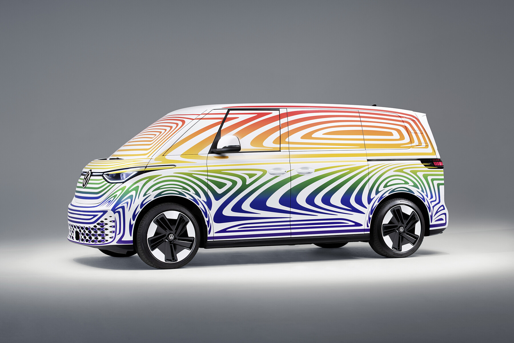 Angekündigt sind zwei verschiedene Varianten des ID. Buzz. Einmal der normale ID. Buzz als klassischer Fünfsitzer für die normale Personenbeförderung. Zum anderen der ID. Buzz Cargo als Dreisitzer ohne Rückbänke für den gewerblichen Einsatz. Zur Reichweite gibt es von Volkswagen an dieser Stelle leider keine Aussage. Einzig die Eigenschaften der Batterie und die Ladezeit werden angegeben. Diese soll ein Bruttoenergiegehalt von 82 kWh bieten und sich tief unten im Sandwichboden befinden, um den Karosserieschwerpunkt möglichst niedrig zu halten. Angetrieben wird der ID. Buzz von einem 150 kW starken Elektromotor, der die Hinterachse antreibt und das Fahrzeug dadurch zu einem Hecktriebler macht. Die Höchstgeschwindigkeit wird bei 145 km/h elektronisch abgeriegelt.