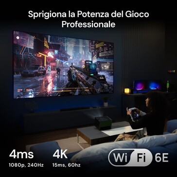 Dass es sich dabei nicht um die native Auflösung handelt, belegt nicht nur der Preis, sondern auch die von der Auflösung und Bildwiederholfrequenz abhängige Eingabeverzögerung, welche bei Full HD-Auflösung und 240 Hz bei 4 Millisekunden und bei 4K-Material und 60 Hz bei 15 Millisekunden liegen soll. ALLM wird ebenso unterstützt wie die Einblendung eines Fadenkreuzes und die selektive Aufhellung von dunklen Bildbereichen, der Beamer dürfte sich damit gut für Videospieler eignen.