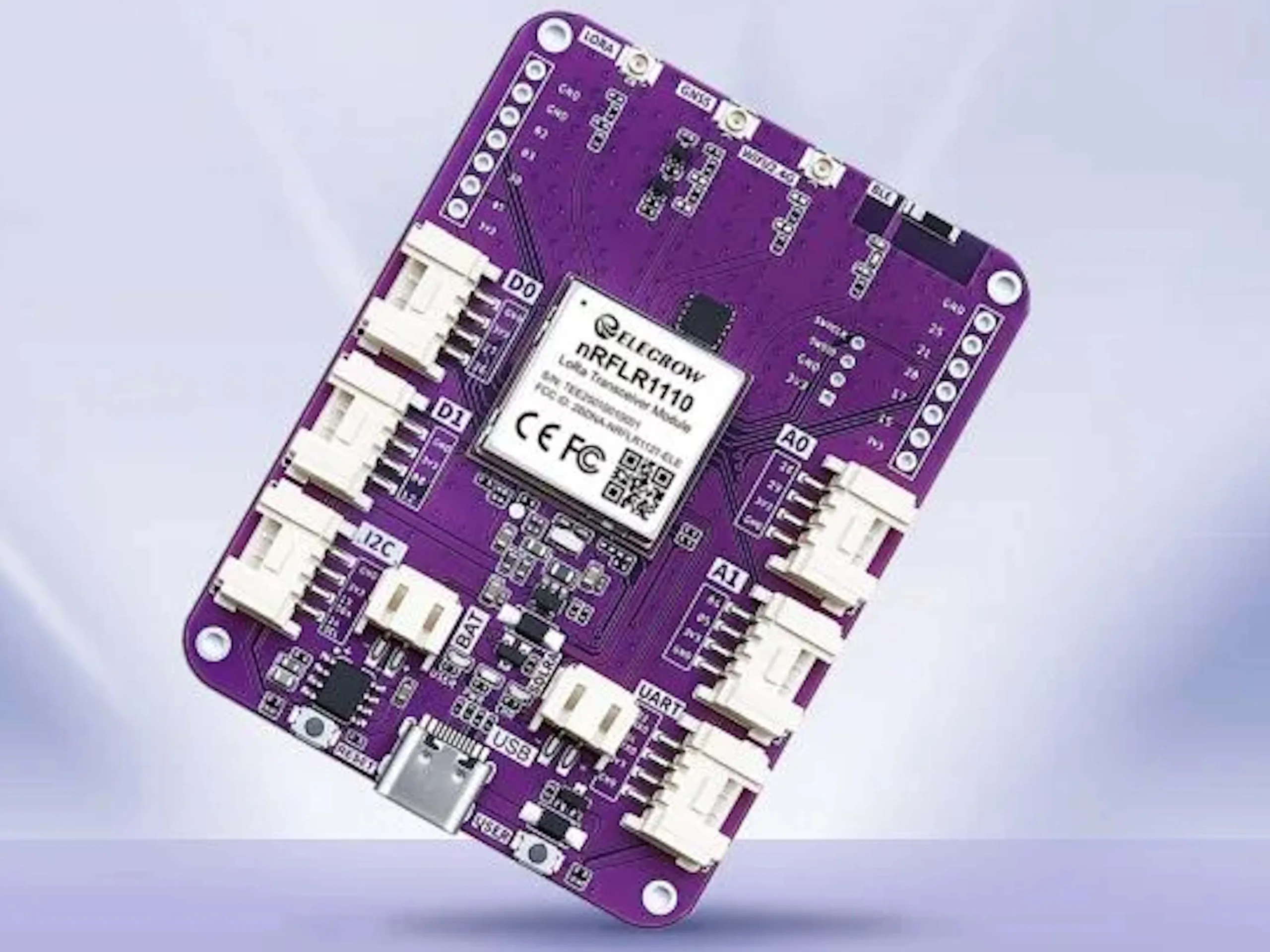 Elecrow bietet mit dem LoRa Node Expansion Board-nRFLR1110 (LMM15010D) eine neue Platine an, die eben die Anbindung über LoRa unterstützt und dabei je nach genutzter Firmware mit 868 oder 915 MHz arbeitet Es kommt ein nRFLR1100-Controller zum Einsatz. Man kann sich dem System durchaus als Bridge nähern: So lassen sich an diese Platine etwa verschiedene Sensoren anbinden. Die Platine sendet dann die Daten über ein Gateway und dann einen Router auch an einen PC beziehungsweise einen Server. Unterstützt werden Crowtail-Systeme (im Preisvergleich), mit denen sich ganz verschiedene Umweltparameter bestimmen lassen. Die Anbindung von Sensoren und Aktoren ist auch über ganz klassische Pins möglich.