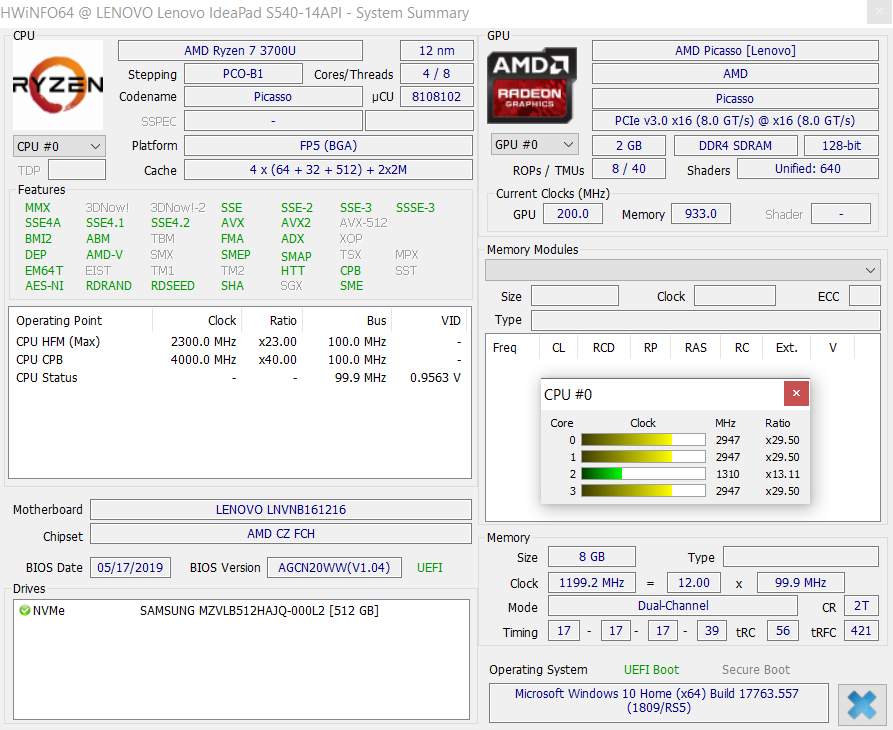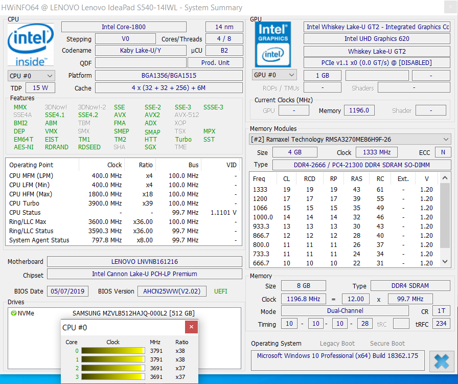 | Lenovo IdeaPad S540-14IWL, Intel Core i5-8265U GeForce MX250, i5-8265U, Samsung SSD PM981 MZVLB512HAJQ | Lenovo IdeaPad S540-14API, AMD Ryzen 7 3700U Vega 10, R7 3700U, Samsung SSD PM981 MZVLB512HAJQ | Lenovo Ideapad S340-14IWL-81N70056GE, Intel Core i7-8565U GeForce MX230, i7-8565U, WDC PC SN520 SDAPNUW-512G | HP Pavilion 14-ce0002ng, Intel Core i7-8550U GeForce MX150, i5-8550U, SanDisk X600 SD9SN8W-128G | Asus VivoBook 14 F412FJ-EB084T, Intel Core i5-8265U GeForce MX230, i5-8265U, Kingston RBU-SNS8180DS3512GJ | |