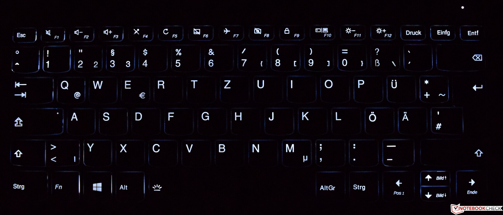 Insgesamt ist die Tastatur des IdeaPad S540 durchschnittlich. Etwas Eingewöhnung braucht man jedoch bei den Pfeiltasten. Diese sorgen mit halber Höhe schnell für Vertipper. Verschweigen wollen wir die zweistufige weiße Hintergrundbeleuchtung nicht. Diese erleichtert das Arbeiten in dunklen Umgebungen.