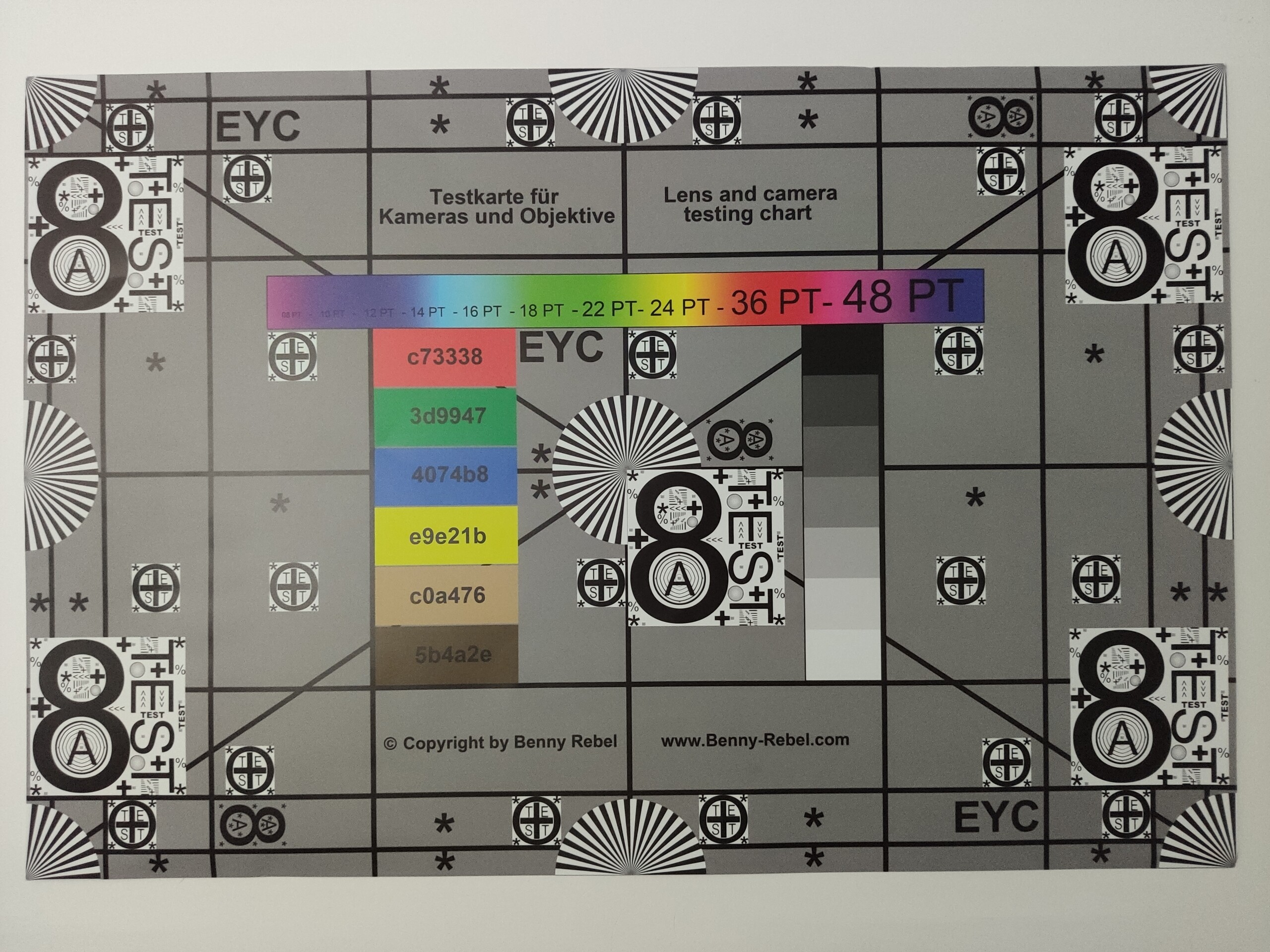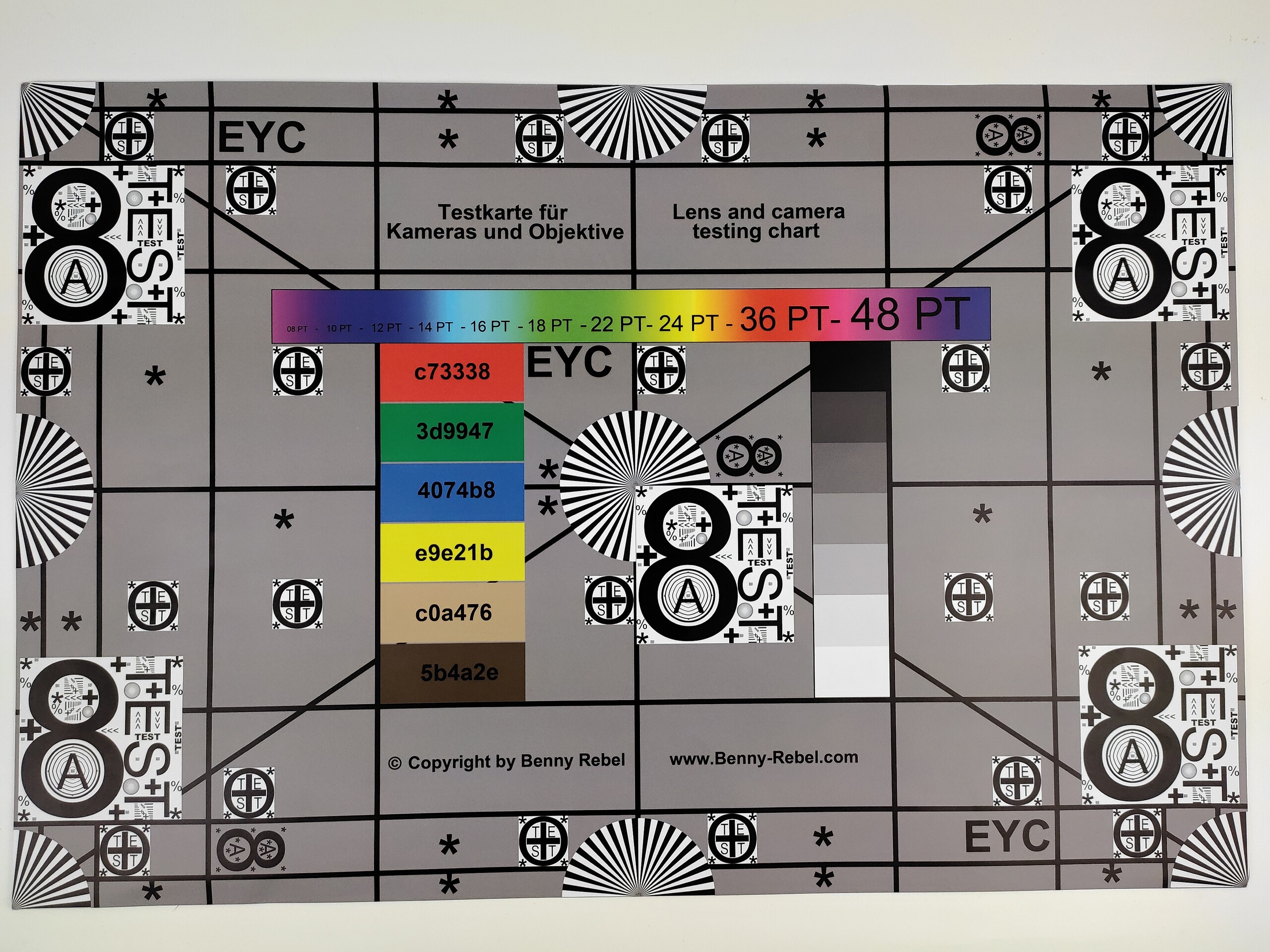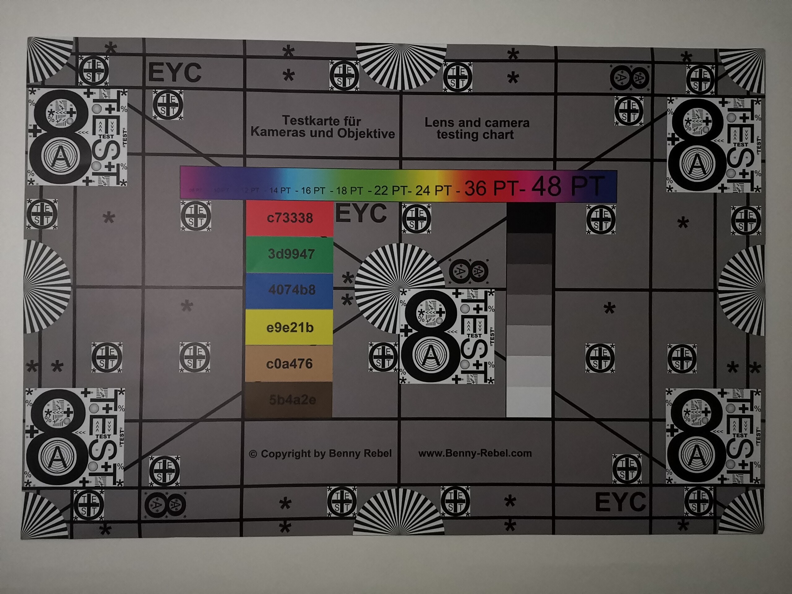 Unter kontrollierten Lichtbedingungen haben wir unser Testchart in drei verschiedenen Lichtsituationen abgelichtet: Hell (1.000 Lux), dämmerig (100 Lux) und im Dunkeln (1 Lux). Im Hellen zeigt keines der Smartphones echte Schwächen. Ein wenig auffällig ist das Mi 9 mit einem stärkeren Kontrastverlust zum Rand hin und das Axon 10, welches einen sehr starken Kontrast bietet.