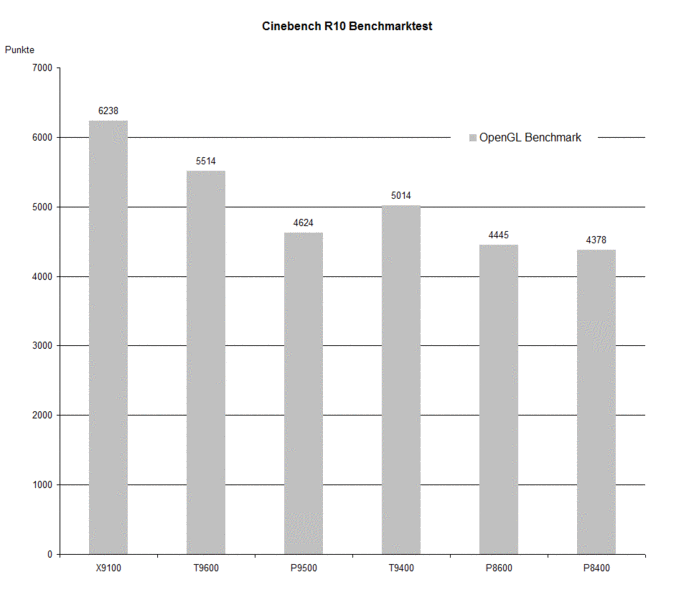 Auffallend ist, dass sich im Multi GPU Test die T9400 CPU knapp vor die P9500 CPU setzen kann, die im Single-CPU Rendering Test noch die Nase vorne hatte.