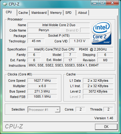 | P8400 | 2.26 GHz | 3MB | 25 Watt | $ 209.- |