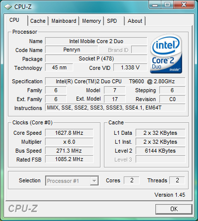 | T9400 | 2.53 GHz | 6MB | 35 Watt | $ 316.- |