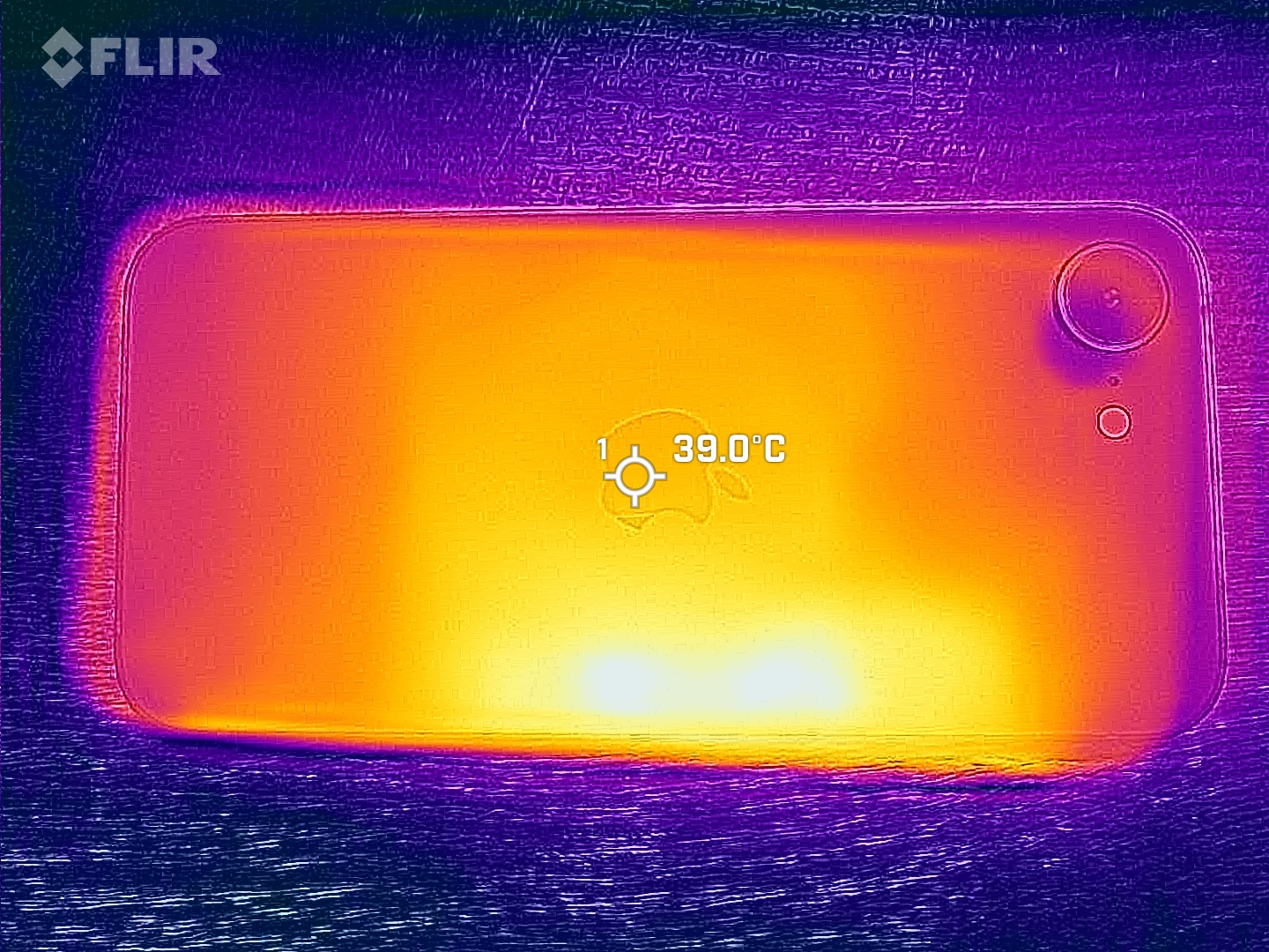 (±) Auf der Unterseite messen wir eine maximalen Wert von 42.1 °C (im Vergleich zum Durchschnitt von 34 °C).