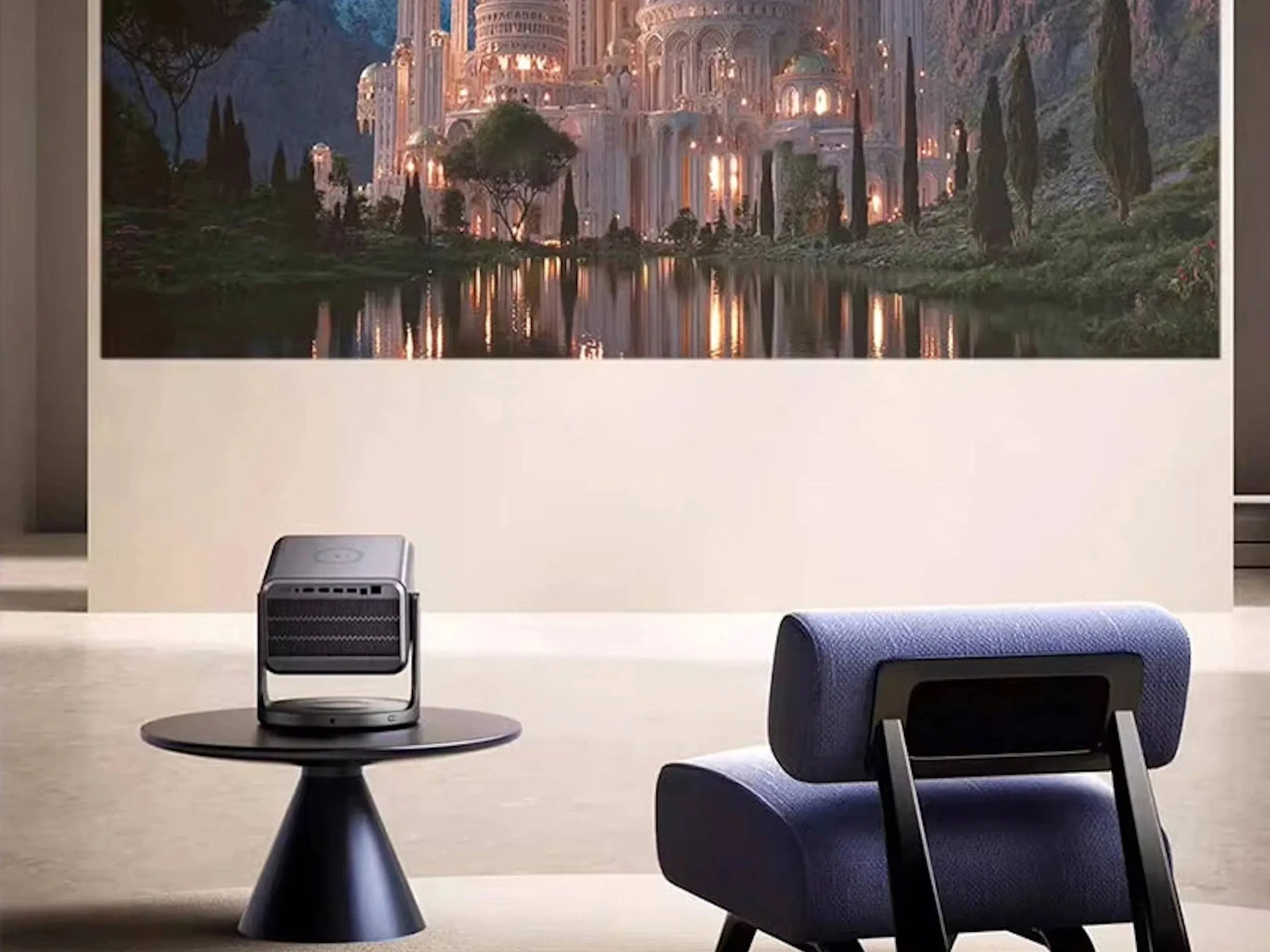 Ein Zoom-Objektiv ist vorhanden, so kann das Projektionsverhältnis auf zwischen 0.9:1 und 1.5:1 justiert werden, was die Aufstellung erleichtern könnte. Die Fokussierung und auch die Trapezkorrektur können automatisch erfolgen, Hindernisse sollen sich ebenfalls automatisch vermeiden lassen. Nicht selbstverständlich: Kompensiert werden soll auch die Färbung einer Wand, was insbesondere bei eher improvisierten Projektionsflächen sinnvoll sein kann. Herstellerangaben zufolge ist eine Projektionsdiagonale von zwischen 80 und 300 Zoll realisierbar. Beigelegt wird ein Smart TV-Stick, womit nicht unbedingt ein externer Zuspieler eingesetzt werden muss.