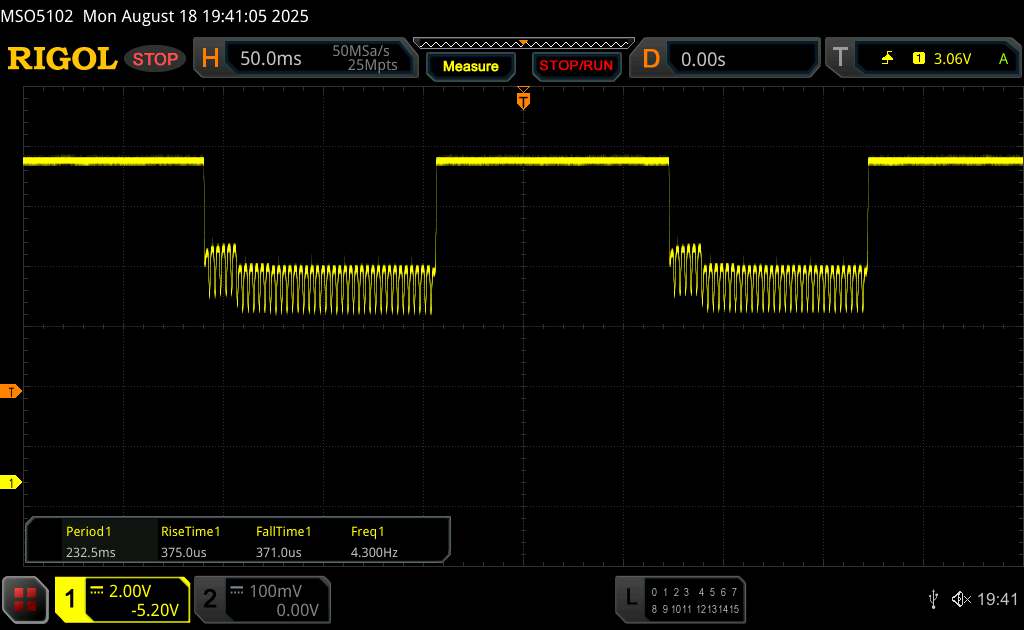 | Flackern / PWM festgestellt | 360 Hz Amplitude: 14.97 % Secondary Frequency: 4166 Hz | ||