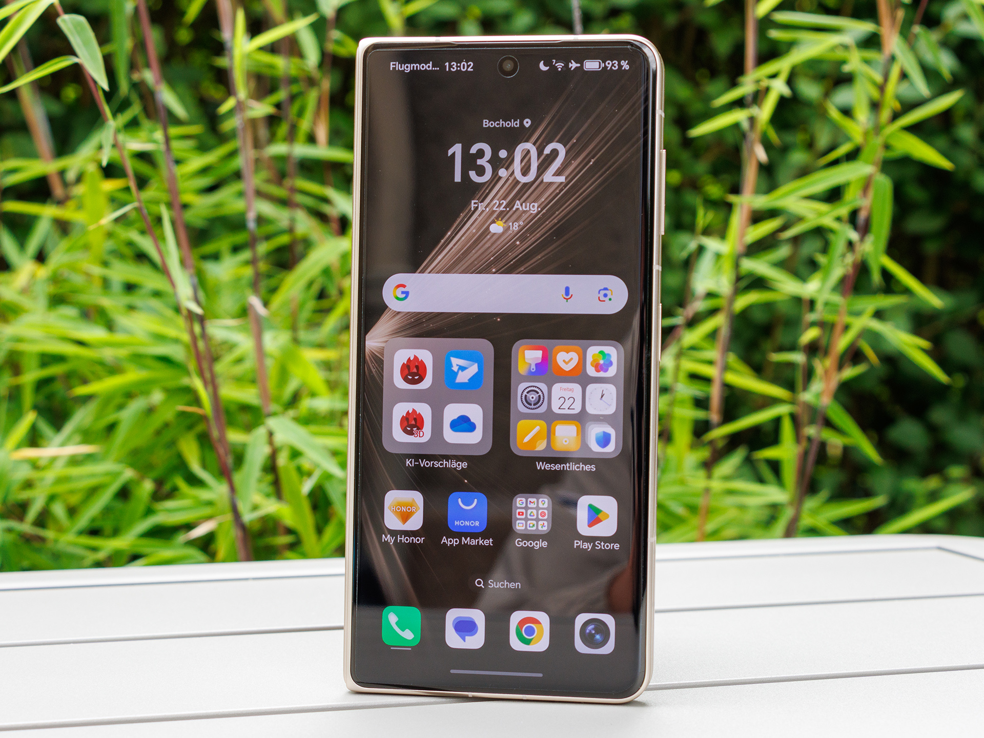 Das Honor Magic V5 ist das aktuell dünnste Foldable, stabil verstärkt und nach IP59 geschützt. Es bietet Stifteingabe, Bluetooth 6.0, Wi-Fi 7, zahlreiche 5G-Bänder sowie eine offline arbeitende Live-Übersetzung und Deepfake-Erkennung.