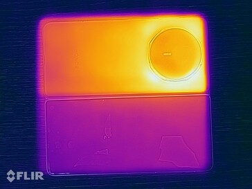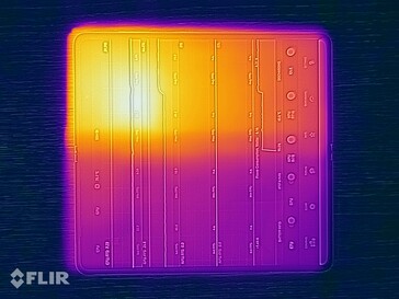 (±) Auf der Unterseite messen wir eine maximalen Wert von 44 °C (im Vergleich zum Durchschnitt von 34 °C).