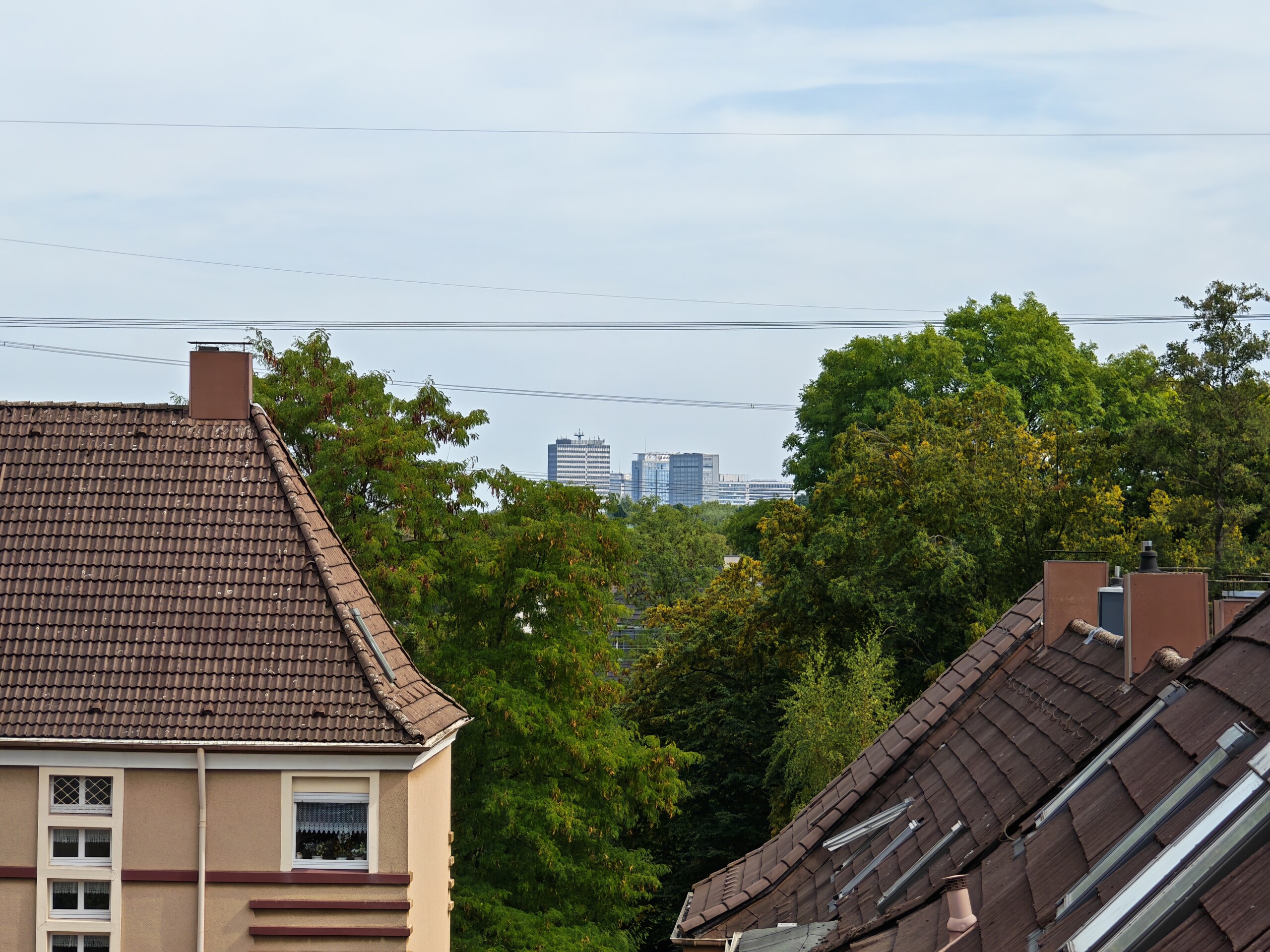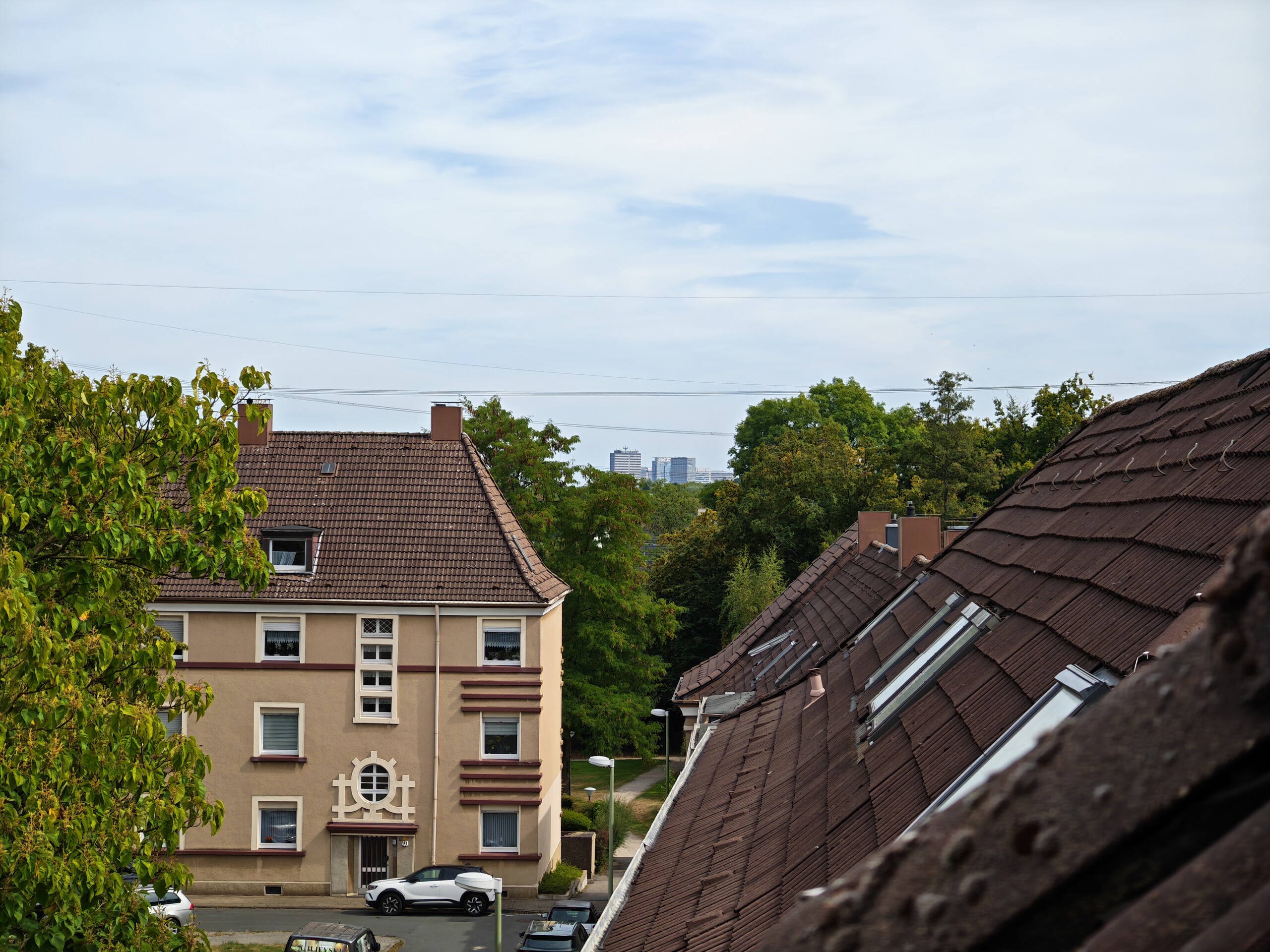 Die Triple-Kamera kann ebenfalls für Selbstporträts genutzt werden, das Außendisplay dient dann als Sucher. Die Hauptkamera macht ausgewogene Fotos und auch der Ultraweitwinkel erlaubt ansprechende Bilder, wird zum Rand hin aber ein wenig unscharf. Gezoomt wird mit einem 3-fachen Periskopzoom (70 mm), welcher auf eine optische Bildstabilisierung zurückgreifen kann. Der 6-fache Digitalzoom ist nahezu verlustfrei und maximal ist eine 100-fache Vergrößerung möglich. Diese kann auf Wunsch durch KI optimiert werden, was durchaus die Qualität verbessern kann, sofern es um Objekte geht, mit Text funktioniert dies im Test nicht. Sowohl Ultraweitwinkel als auch Zoom eignen sich prima für Makromotive.