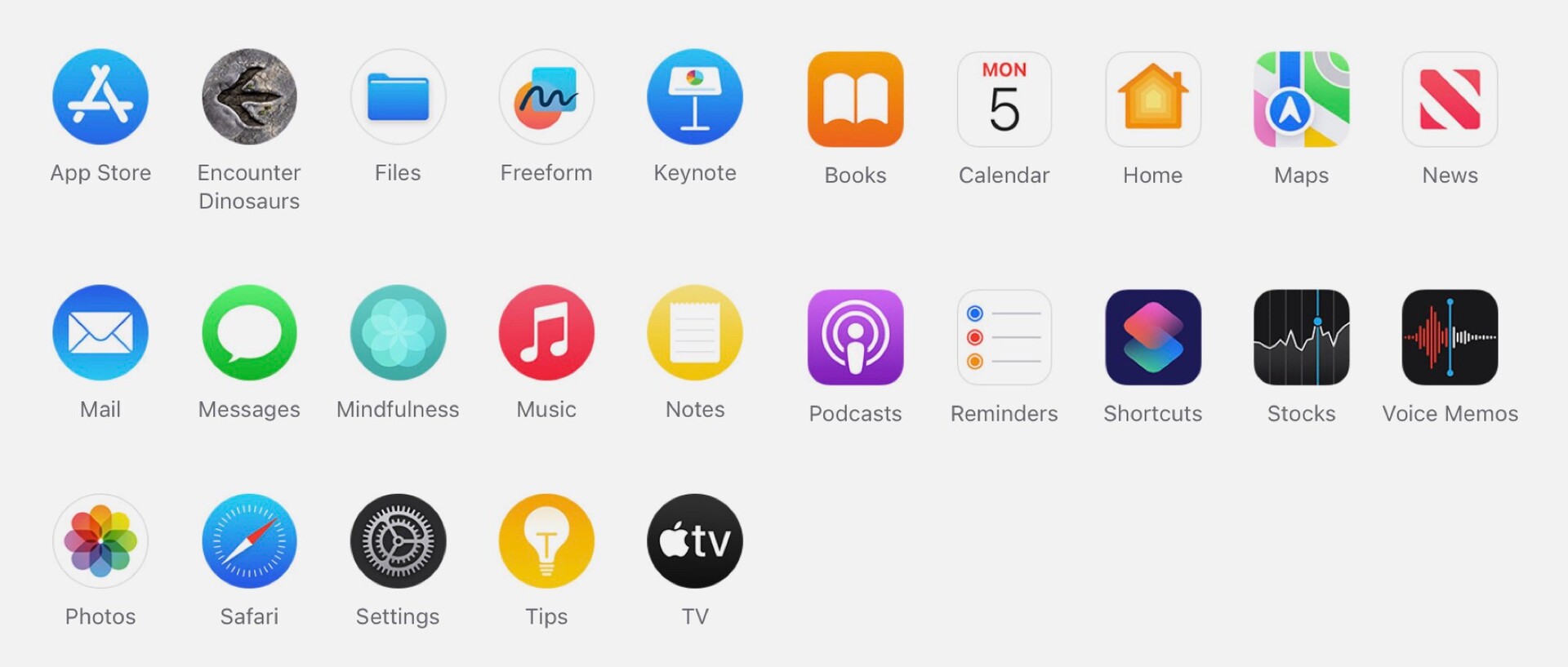 Apple Home, Books, Apple TV, Apple Music, Notizen, Erinnerungen, der Kalender, die Dateien-App, Mail oder auch die Fotos-App – all diese Software kann auch auf anderen Apple-Geräten genutzt werden. Interessanter ist da schon Keynote, Apples PowerPoint-Alternative, die offenbar schon zum Launch bereitsteht, um virtuelle Präsentationen zu halten. Die einzige komplett neue App nennt sich "Encounter Dinosaurs", wie der Name bereits andeutet, handelt es sich dabei um die vielfach beworbene App, die animierte Dinosaurier in Lebensgröße in die Augmented Reality holt.