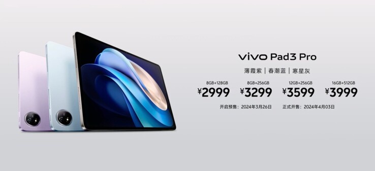 Das Vivo Pad3 Pro startet in China mit 8 GB Arbeitsspeicher und 128 GB Flash-Speicher für 2.999 Yuan (ca. 382 Euro), das Topmodell mit 16 GB RAM und 512 GB Speicher kostet 3.999 Yuan (ca. 510 Euro). Vivo hat noch nicht bestätigt, ob das Vivo Pad3 Pro auch in Europa auf den Markt kommen wird.