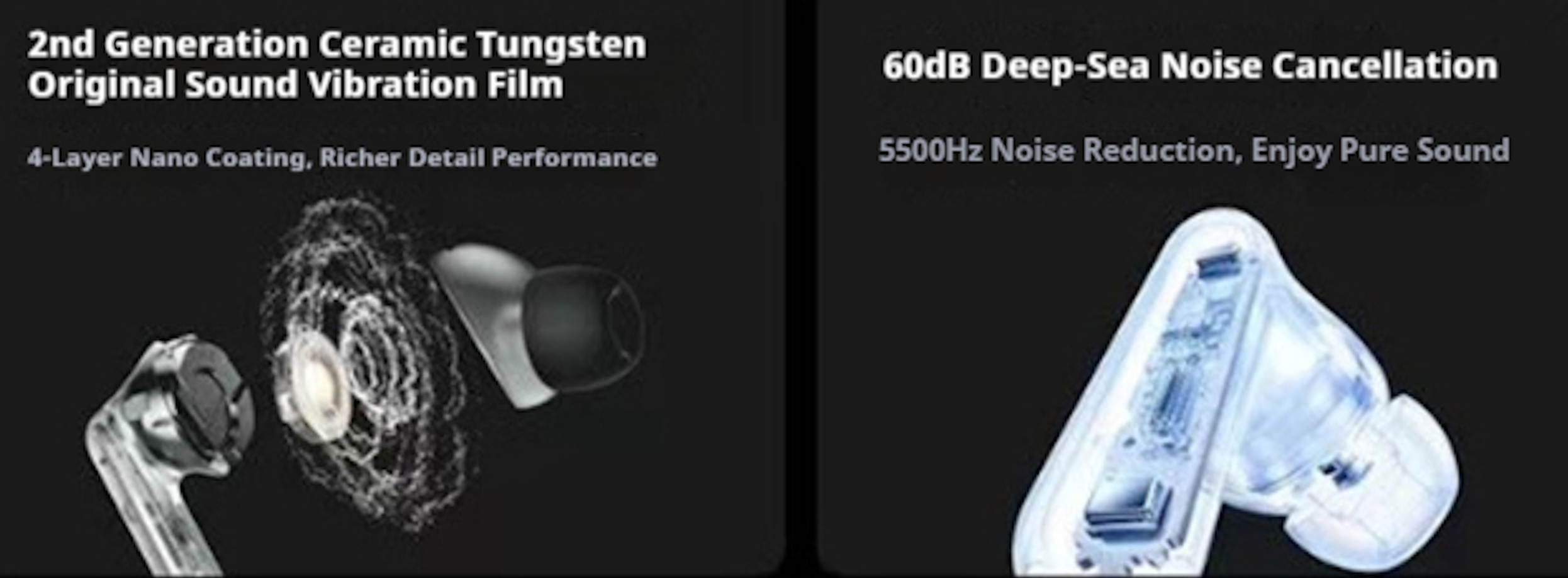Verbaut sind 11 Millimeter große Treiber, als Material für den Treiber beziehungsweise das Diaphragma soll auch Wolfram genutzt werden. Angegeben wird eine maximale Akkulaufzeit von bis zu 12 Stunden ohne und 6 Stunden mit ANC, die Ladezeit ohne ANC und mit Zwischenladung wird mit bis zu 48 Stunden angegeben. Die Anforderungen der IP54-Zertifizierungen sollen erfüllt werden. Herstellerangaben zufolge kann die Verbindung zu drei Geräten gleichzeitig gehalten werden, damit können bei der Nutzung etwa eines Smartphones, eines Laptops und eines Notebooks ständige Kopplungsvorgänge entfallen.