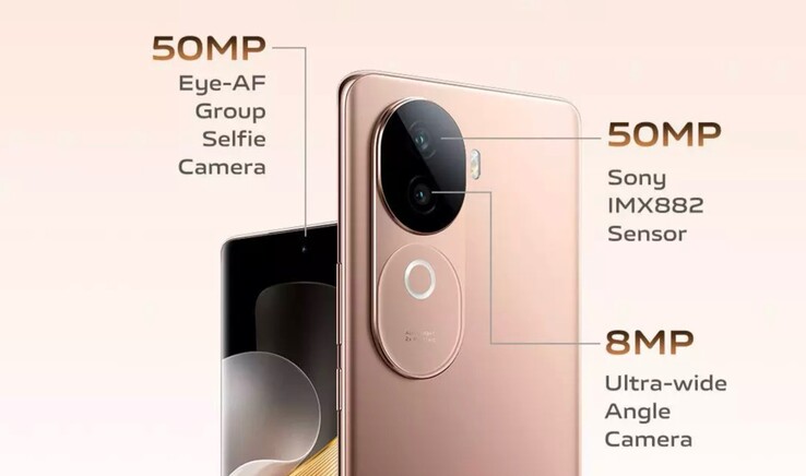 Die 50 MP Ultraweitwinkel-Kamera wird durch eine 8 MP Kamera ersetzt, allerdings verbaut Vivo auch beim V40e eine 50 MP f/1.79 Hauptkamera mit Sony IMX882 Sensor und OIS sowie eine 50 MP f/2.0 Selfie-Kamera. Das Smartphone kann 4K-Videos aufzeichnen, und unterstützt diverse AI-Features, um Fotos zu bearbeiten, inklusive AI Eraser, um störende Inhalte aus Bildern zu entfernen. Das Vivo V40e besitzt ein 6,77 Zoll AMOLED-Display mit einer Auflösung von 2.392 x 1.080 Pixel und einer Bildfrequenz von 120 Hz.