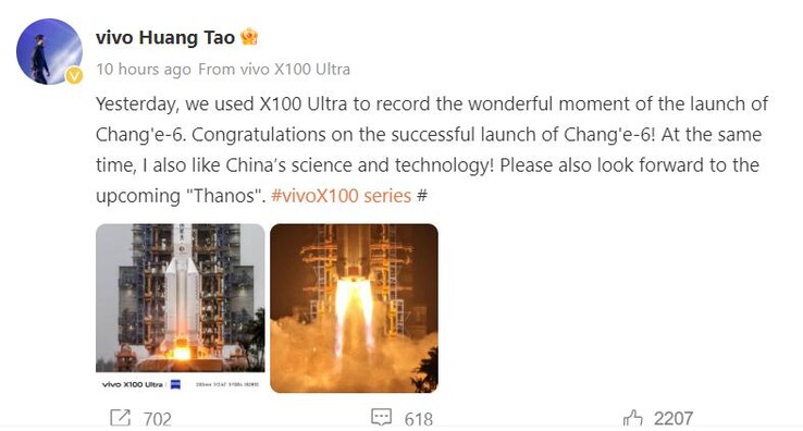 Vivo ist gerne ganz vorne mit dabei, wenn chinesische Geschichte geschrieben wird. Die ersten Sample-Photos aus der Kamera des Vivo X Fold3 Pro wurden im Rahmen einer Antarktis-Expedition erstellt, nun war erneut eine unveröffentlichte Vivo-Kamera mit dabei als die Rakete Chang'e 6 ihre Reise auf die Rückseite des Mondes angetreten ist. Das unter dem Codenamen "Thanos" entwickelte Vivo X100 Ultra wurde zwar nicht mit auf den Mond geschickt, die Kamera lieferte aber zumindest Bilder des Raketenstarts, wie der für Produkte zuständige Vizepräsident Huang Tao auf Weibo stolz verkündete.