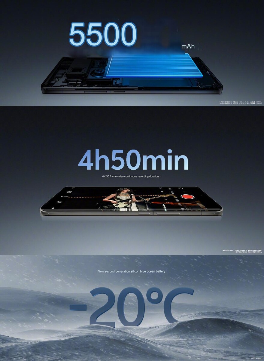 Im Gegensatz zu den ebenfalls heute gelaunchten Brüdern Vivo X100s und Vivo X100s Pro steckt im Vivo X100 Ultra ein 6,78 Zoll Samsung E7 AMOLED-Panel mit 3.200 x 1.440 Pixel Auflösung, dynamischem Frequenzspektrum bis 120 Hz und 1.440 Hz PWM Dimming. Der 5.500 mAh Akku soll fast 5 Stunden ununterbrochene 4K-Aufnahmen unterstützen und auch bei -20 Grad Celsius noch zuverlässig Leistung bringen. Unter dem Display steht übrigens ein Ultraschall-Fingerabdrucksensor zur Verfügung, auch das ein Merkmal, mit dem sich Ultra von Pro unterscheidet.