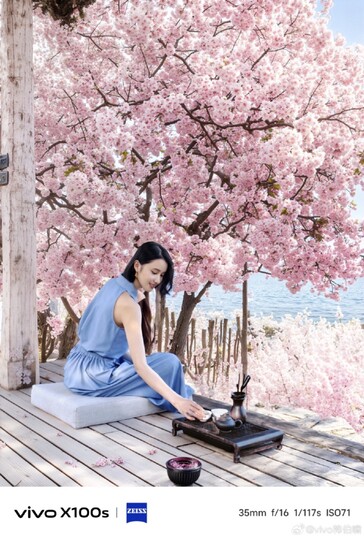 Die künstliche Intelligenz beschränkt sich aber nicht auf Farbänderungen, sondern fügt auch einige Details hinzu, wie etwa Schnee oder Kirschblüten, die am Boden sowie auf dem Kopf der fotografierten Person platziert werden. Während die Farbgebung des Holzbodens im Vordergrund an den neuen Hintergrund angepasst wird, ignoriert die AI das Kleid der abgelichteten Frau, ansonsten sind in den Beispiel-Fotos keine offensichtlichen Fehler zu sehen. Fotos sind nach der Verarbeitung durch diese KI dennoch nicht besonders realistisch, da Vivo schlicht die Art des fotografierten Baumes ändert, und es mit der Realität in diesem Fall nicht so genau nimmt.