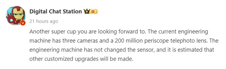 Bis es in Europa so weit ist, wird es wohl noch etwas dauern, aber auch hierzulande steigt das Interesse an den mit Zeiss-Technik aufgemotzten Kameras. Nachdem das Vivo X200 Ultra im Rahmen eines Interviews mit Vivo-Verantwortlichen bereits für 2025 offiziell bestätigt wurde, hat der chinesische Leaker Digital Chat Station nun auch bereits erste Hinweise auf das nächste, ultimative Zeiss-Kamera-Flaggschiff für uns. In einem Weibo-Post (siehe auch Screenshot unten) verrät er, dass ein erstes Vivo X200 Ultra Testgerät erneut eine Triple-Cam mit 200 Megapixel Telefoto aufweist, auch die Sensorik dürfte bis dato die gleiche sein. Abgesehen vom Snapdragon 8 Elite statt Dimensity 9400 scheinen die Neuigkeiten also offenbar woanders zu liegen - wo genau, ist noch nicht bekannt. Potentielle Möglichkeiten wären abgesehen von einem V4 ISP etwa auch eine noch bessere Zeiss-Optik.