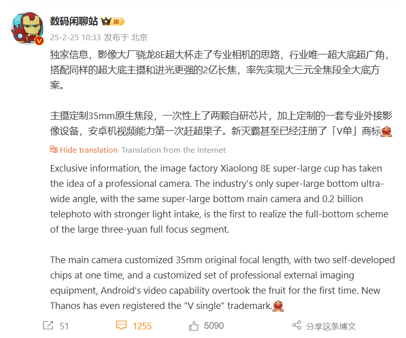 Vor Kurzem lieferte der bekannte chinesische Leaker Digital Chat Station nun noch ein paar weitere "exklusive" Informationen vorab. Laut seinem Weibo-Post (siehe auch unten als Screenshot) sollen wohl nicht nur ambitionierte Fotografen sondern auch Videofilmer mit dem Vivo X200 Ultra angesprochen werden. Das Ziel sei demnach ein aktuelles iPhone wie das iPhone 16 Pro Max beim Thema Video zu überholen, was laut Leaker erstmals für ein Android-Phone gelungen sei. Ob das wirklich stimmt, werden Tests zeigen, behauptet wurde das ja bereits des Öfteren. Apple selbst dürfte dieses Thema ebenfalls im Visier haben, wie unlängst ein bekannter Analyst für das iPhone 17 Pro andeutete.