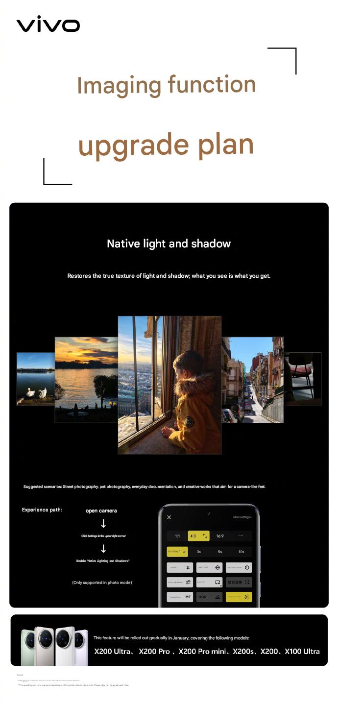 Vivo hat sich im chinesischen Netzwerk Weibo zu dem Update geäußert und alle Modelle genannt, die das Update erhalten werden. Das Vivo X100 Pro ist demnach nicht dabei, sehr wohl aber das Vivo X100 Utra (China-only) sowie das Vivo X200 Pro, X200 Pro Mini, X200s und Vivo X200. Alle Flaggschiffe sollen das Native Lighting Feature noch im Januar erhalten, zumindest jene mit chinesischem Origin OS.