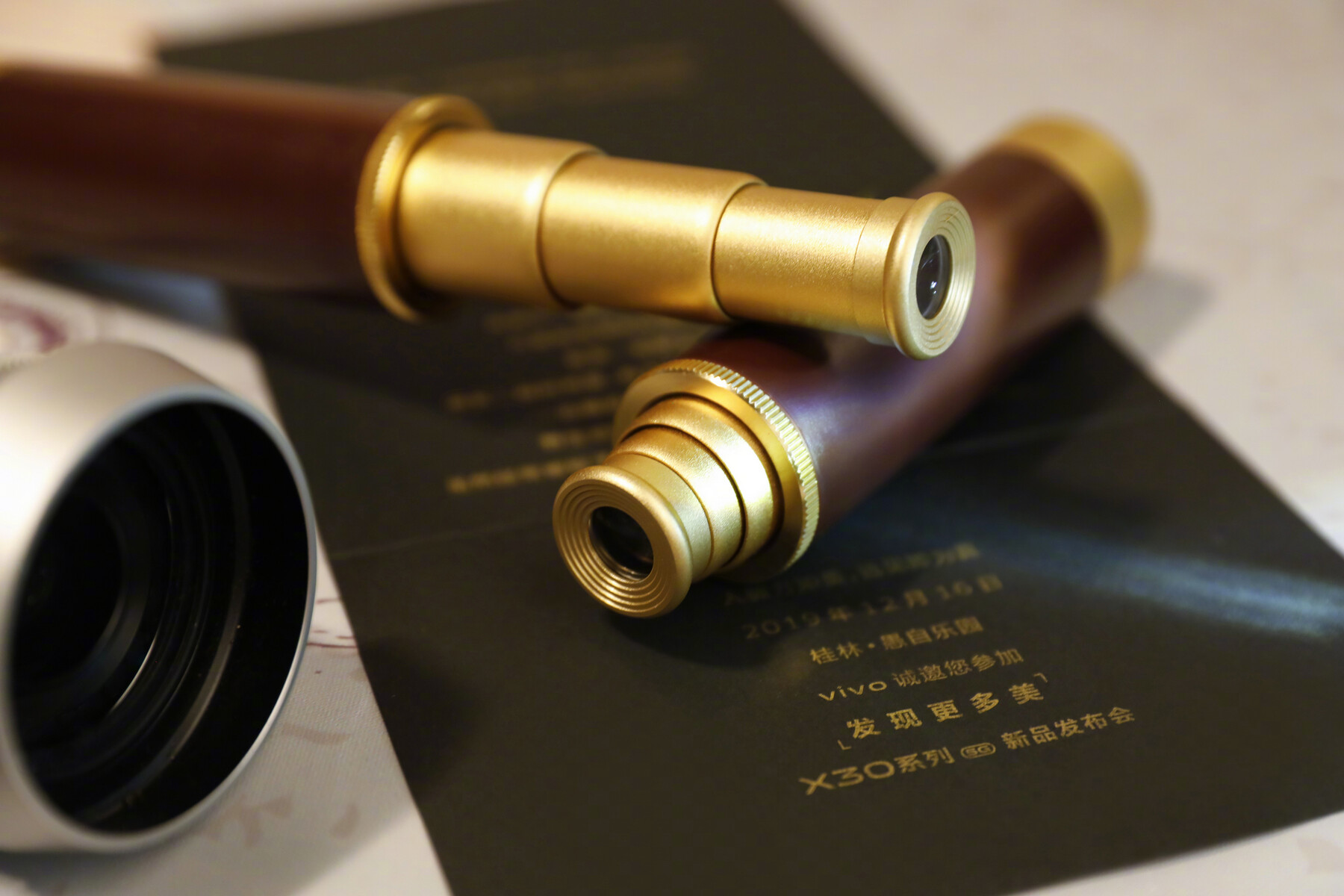 Den bisherigen Berichten und Leaks zufolge spendiert Vivo seinem X30 eine sogenannte Periskop-Kamera, die es auf eine optische Zoom-Leistung bringen soll, die an ein konventionelles Teleskop heranreicht. In Anspielung auf die laut Vivo "außergewöhnlichen Zoom-Fähigkeiten" des X30 hat der Handyhersteller eine edle Box als Einladung an die geladenen Premieren-Gäste verschickt, in dem neben der Karte für die X30-Veranstaltung auch ein kleines Taschenteleskop beigelegt ist.