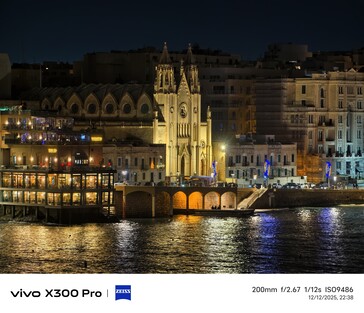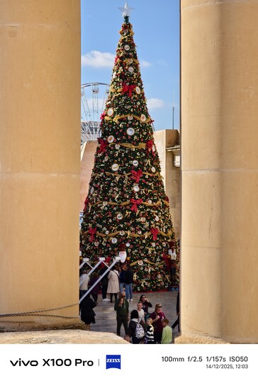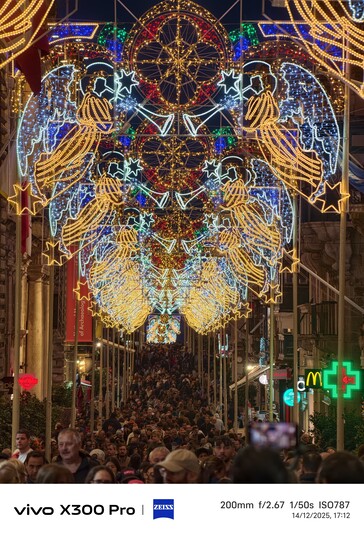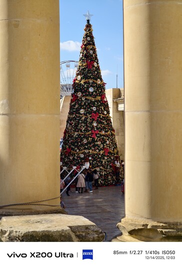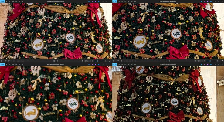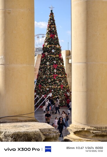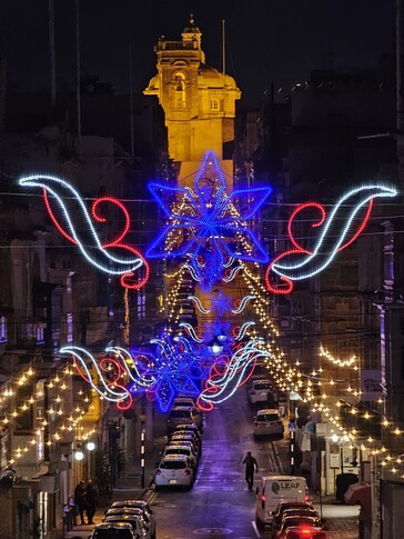 Malta vor Weihnachten ist ein besonderes Erlebnis. Statt Schnee gibt es hier in vielen Stadtteilen Straßen mit teils sehr aufwändiger Weihnachtsbeleuchtung, die auch einen guten Nachtmodus-Test (aus der Hand) ermöglichen, etwa auf der Triq Il - Vitorja in Senglea oder der Hauptader in Valetta, die am Abend gesteckt voll war - durchaus schwierige Voraussetzungen für einen 10x-Zoom-Test. Mit Stativ wäre da natürlich noch deutlich mehr drin gewesen. Es hat einige Versuche benötigt, unten sind die jeweils besten Ergebnisse für Vivo X300 Pro mit Telekonverter beziehungsweise Galaxy S23 Ultra. Wer hier besser abschneidet, ist wohl auf den ersten Blick erkennbar, das Samsung-Handy liefert aber angesichts des winzigen 10 MP Sensors durchaus respektable Ergebnisse.