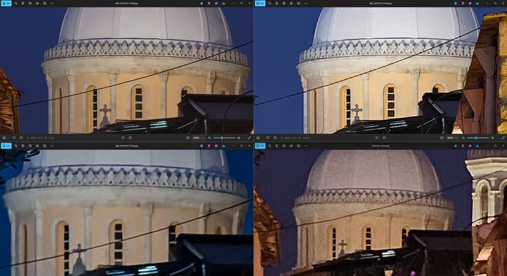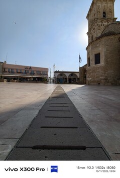 Die Sankt-Lazarus-Kirche in Larnaca war ein Vergleichsobjekt für den ersten Ultraweitwinkel-Test zwischen den Vivos. Ich entschuldige mich für den jeweils leicht unterschiedlichen Aufnahmewinkel, hier dürfte der Gewinner aber ohnehin recht eindeutig sein. Das Vivo X200 Ultra hat nicht nur das breiteste Sichtfeld und kann als einziges die Kirche ganz abbilden, die weiter entfernten Details sind hier auch klar am schärfsten, selbst bei Tag also ein eindeutiger Sieger bei 300-facher Vergrößerung, wenngleich das Vivo X300 Pro definitiv besser ist als das Vivo X100 Pro. Auch farblich haben wir hier drei unterschiedliche Versionen der gleichen Realität. Aus der Erinnerung heraus würde ich behaupten, dass die Ultra-Version die authentischste ist, garantieren kann ich es allerdings nicht mehr. Die Verschlusszeit ist beim X200 Ultra am kürzesten - ganz klar ein Vorteil des großen Sensors.