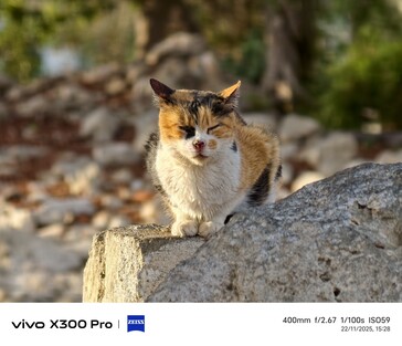 Hat Samsungs 1/3.52 Zoll 10 MP Sensor mit F/4.9 Optik 2025 noch eine Chance gegen das auf einem 1/1.4 Zoll 200 Megapixel Sensor basierende Telefoto mit F/2.7 Optik? Die Logik sagt nein, dennoch vermisse ich die 10x Optik des Galaxy S23 Ultra in der Praxis oft, da sie einen sehr komprimierten Blick auf Straßenschluchten oder weit entfernte Objekte ermöglicht hat. Gerüchteweise soll sie 2026 im Oppo Find X9 Ultra zurückkommen. Mit dem Telekonverter des Vivo X300 Pro kann man aus dem 3,7x Telefoto eine 8,7x Optik basteln, was zwar umständlicher ist, aber einen ähnlichen Effekt liefert. Im Folgenden ein paar Aufnahmen mit optischem 8,7x beziehungsweise 10x Zoom. Das zweite Katzenporträt wurde bei 17,4x, respektive 20x aufgenommen.