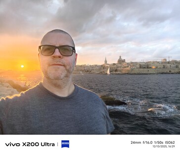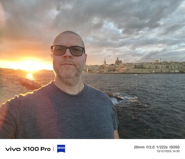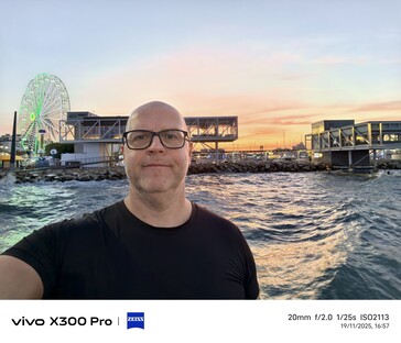 Ich bin ja nicht gerade der größte Selfie-Fan, aber im Dienste der Wissenschaft habe ich an einigen Orten ein paar Selfies erstellt, unter unterschiedlichen Lichtverhältnissen. In meinen Augen hat das Vivo X300 Pro in Sachen Selfie-Qualität im Vergleich zum Vivo X200 Ultra ordentlich zugelegt. Nicht nur beim deutlich ausgeweiteten Blickwinkel sondern auch bei der Hautfarbe (zumindest in meinem Fall) liefert das aktuelle Vivo-Flaggschiff in den meisten Fällen das natürlichste Foto aus dem Quartett. Beim letzten Beispiel mit dem Sonnenuntergang als Gegenlichtquelle tut sich aber auch das Vivo X300 Pro etwas schwer.