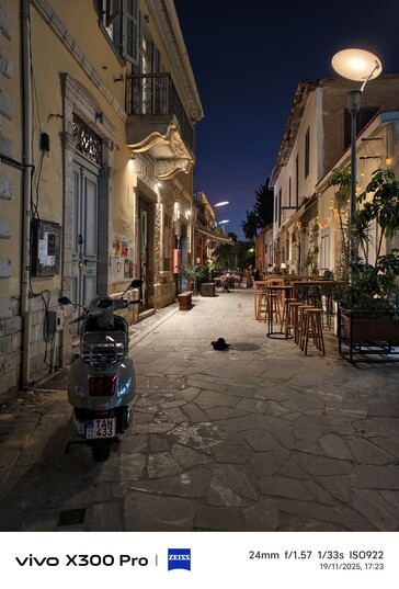 Ganz ohne Telekonverter oder 10x Zoom zeigen die vier Telefotos in Limassol was nachts in ihnen steckt - jeweils mit nativer Brennweite. Ganz vorne spielen Vivo X300 Pro und Vivo X200 Ultra in einer anderen Liga. Die Lichtquelle im Vordergrund war übrigens tatsächlich blau, nicht weiß, wie Samsung die Szene fehlinterpretiert - zudem fehlen hier Details in den Schatten.