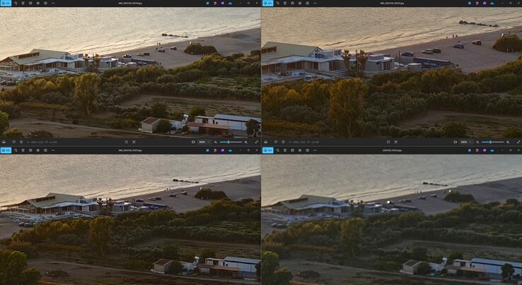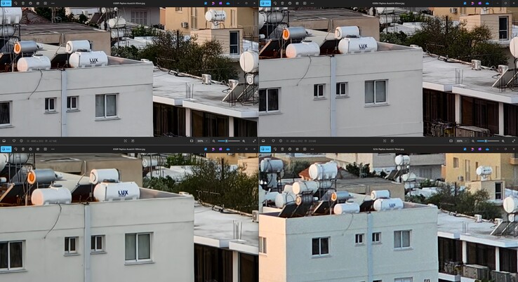 In allen drei zeigt sich ein großer Abstand bei Schärfe und Detailgrad zwischen Samsung Galaxy S23 Ultra und Vivo X100 Pro einerseits sowie Vivo X200 Ultra und Vivo X300 Pro andererseits. Die Letztgenannten sind meist auf einem sehr ähnlichen Niveau und unterscheiden sich primär durch Details wie leicht kräftigere Farben beziehungsweise etwas mehr Kontrast beim neueren Pro-Modell. Weit abgeschlagen ist erwartbar Samsungs 3x Telefoto, das in dieser Liga einfach nicht mehr mitspielen kann, beim Galaxy S25 Ultra aber fairerweise durch ein 5x Telefoto ergänzt wird.