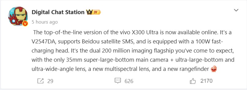 Vivo X300 Ultra Sat-Version und Vlogging-Kamera