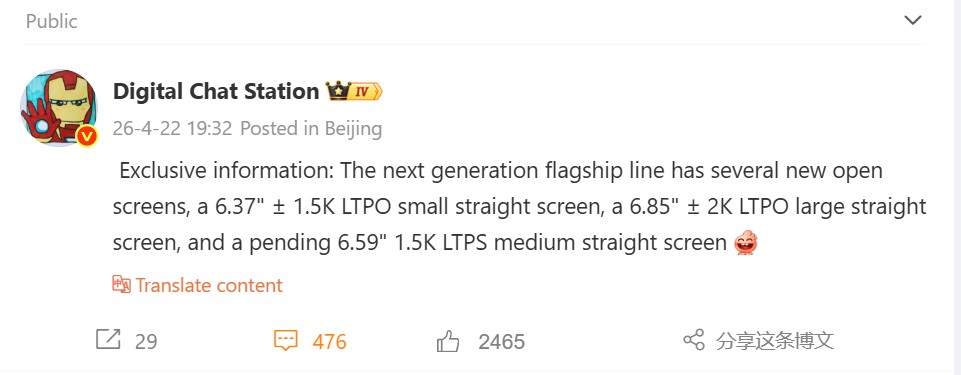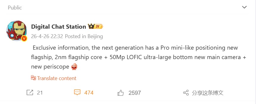 Dazwischen dürfte es noch eine etwas abgespeckte, mittlere Vivo X500 Version mit 1,5K 6,59 Zoll OLED geben, allerdings nur LTPS-Backplane, was also auf das X500 Basismodell deutet. Zum kompakteren 6,37 Zoll Modell hat sich der Leaker auch noch in einem separaten Weibo-Post geäußert. Auch das wird bereits mit 2nm-Chip, wohl Mediatek Dimensity 9600, sowie zwei neuen Zeiss-Kameras geplant. Neben einer neuen 50 Megapixel Hauptkamera mit LoFIC-Technologie für mehr Dynamik (laut früheren Leaks ein Sony LYT-938) soll auch das Periskop-Telefoto erneuert werden.